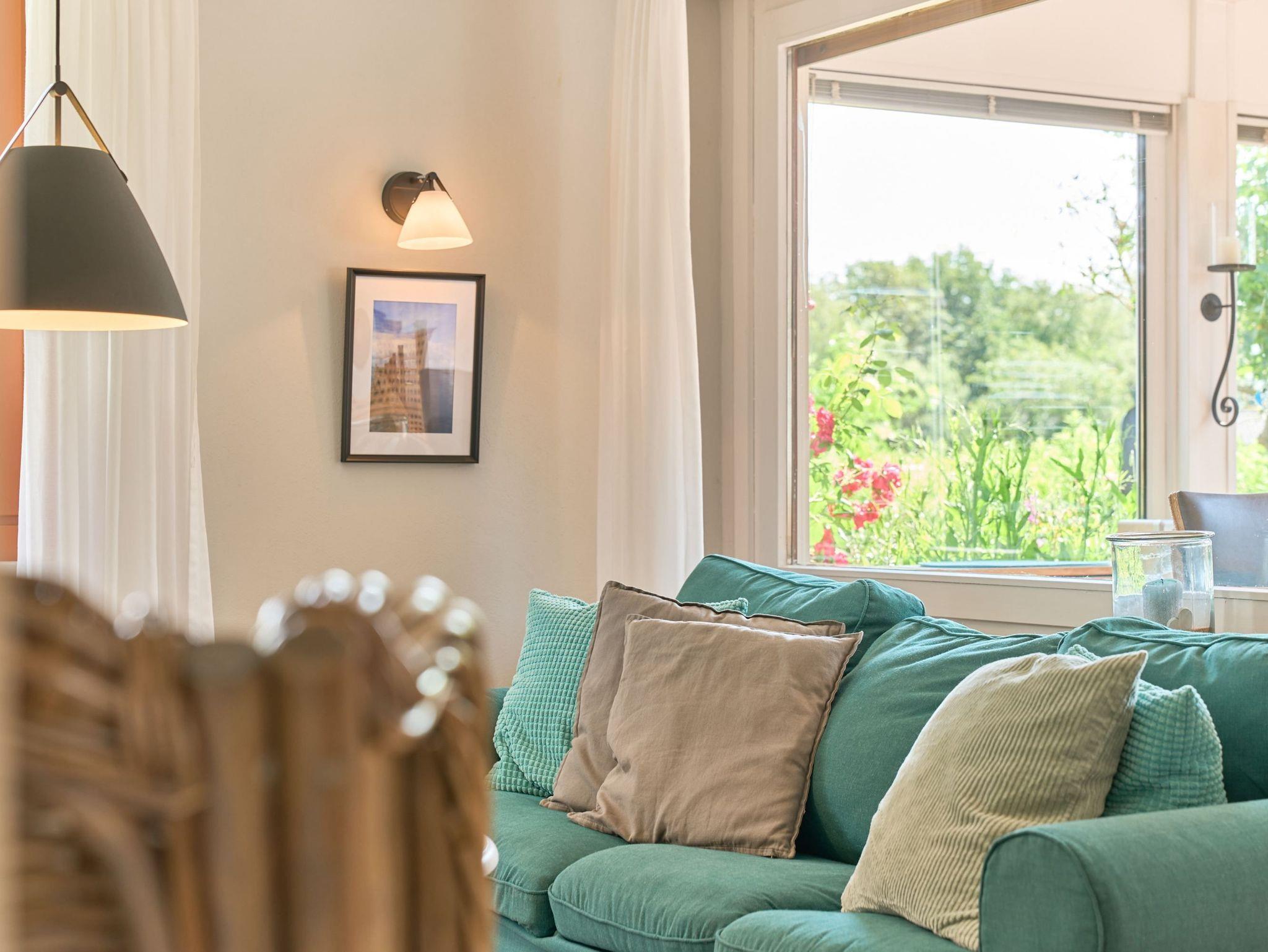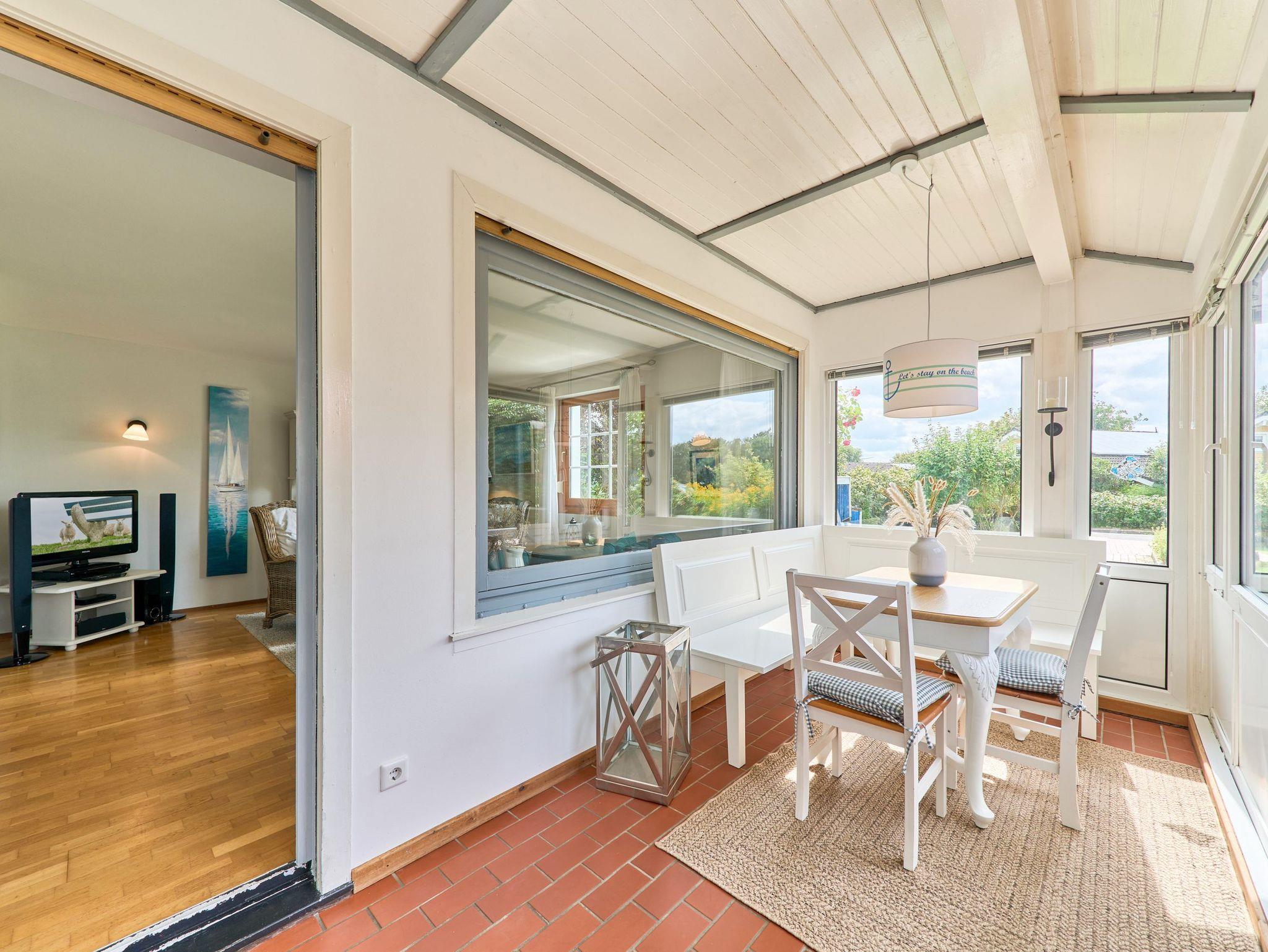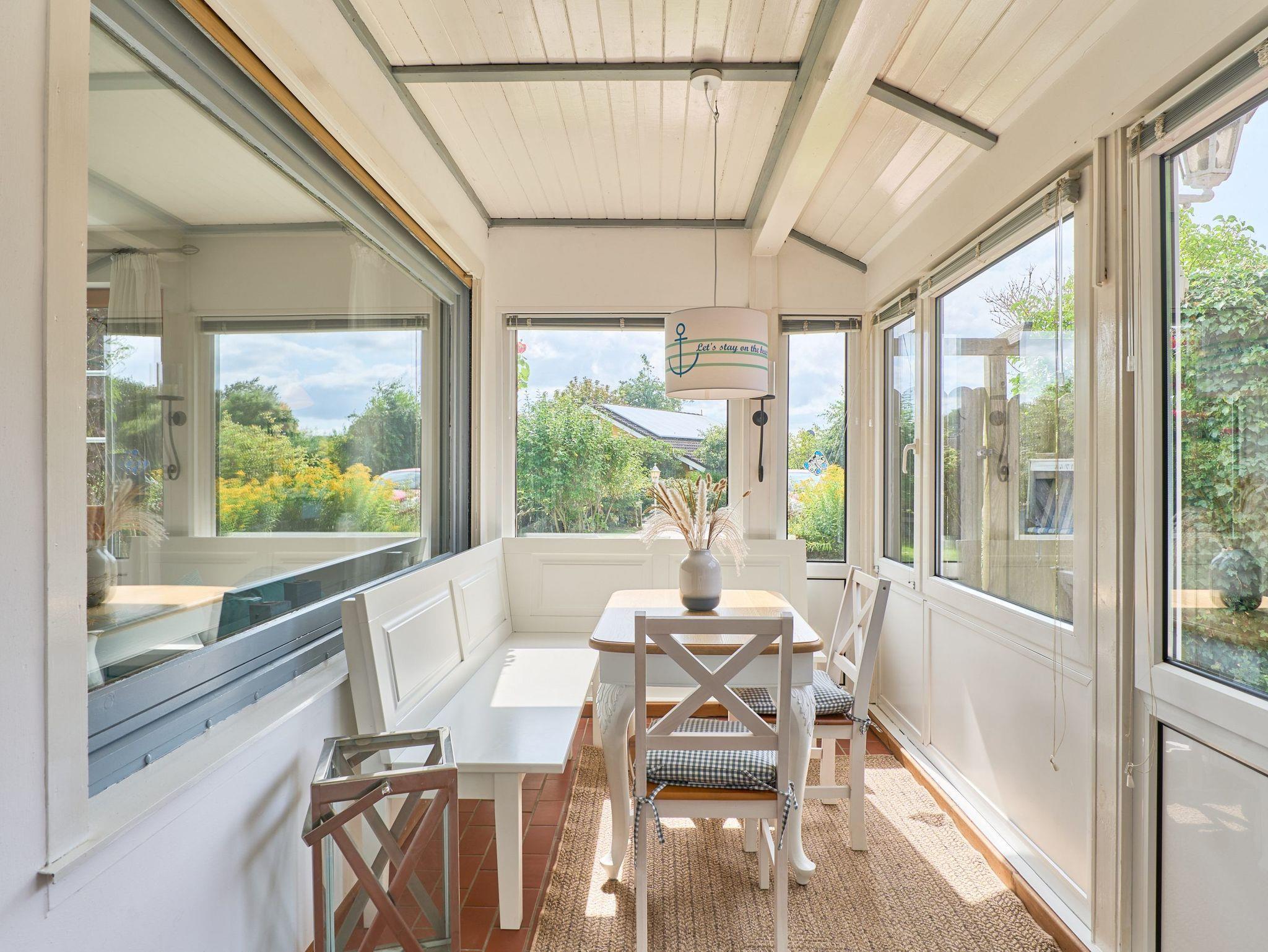 Vor dem Wintergarten liegt die nicht einsehbare Terrasse, wo Ihr auch den Zugang zur hauseigenen Sauna findet. In der Winterzeit oder wenn das Wetter im Norden einmal stürmisch ist, lädt die kuschelige Ofenecke mit dem dänischen Kaminofen zu gemütlichen Abenden ein.