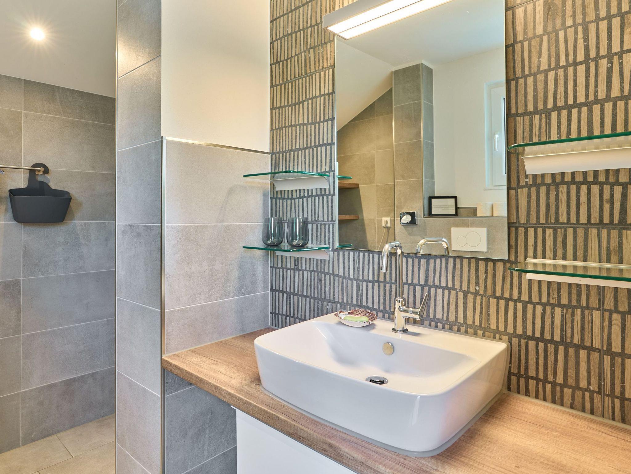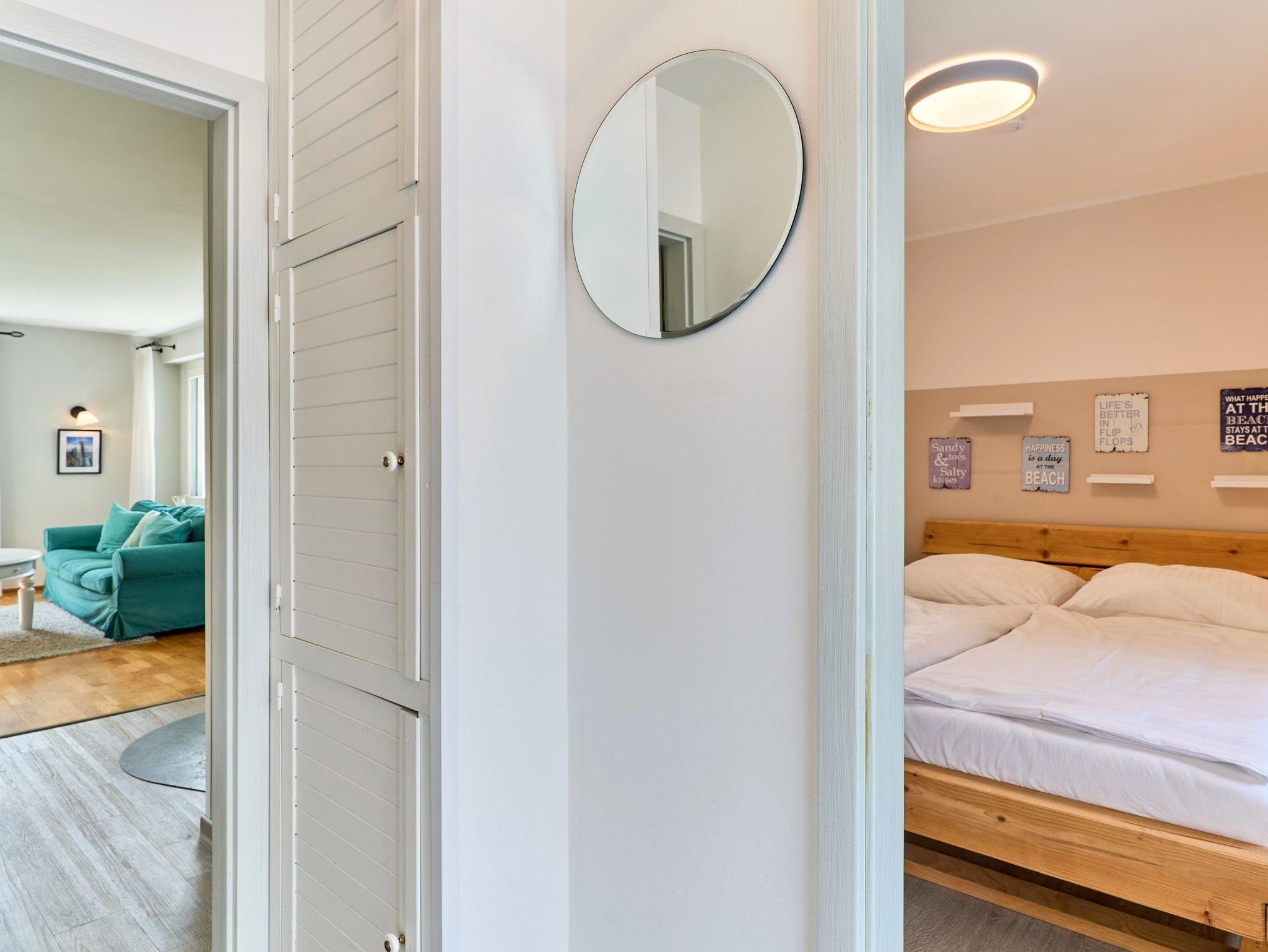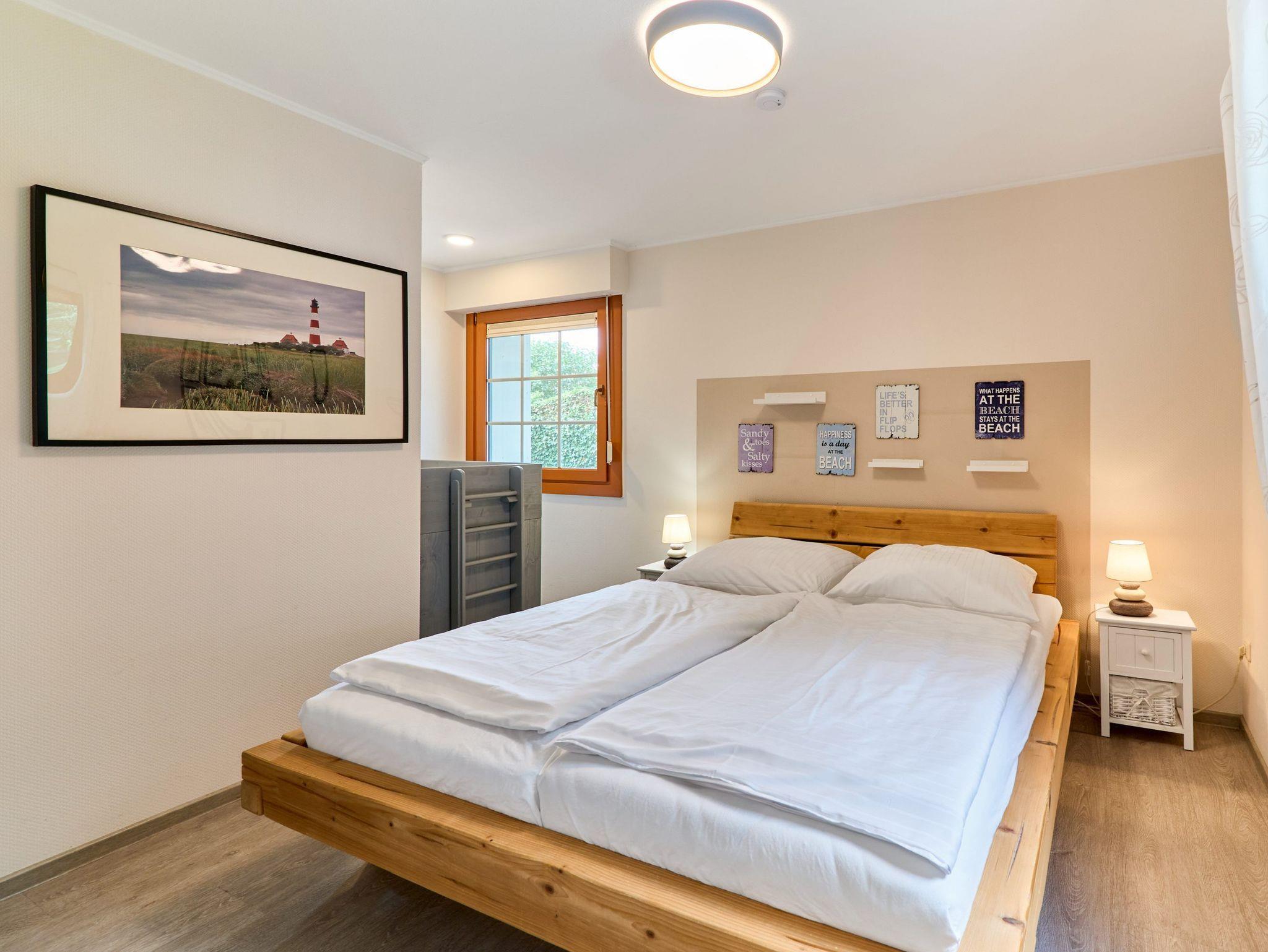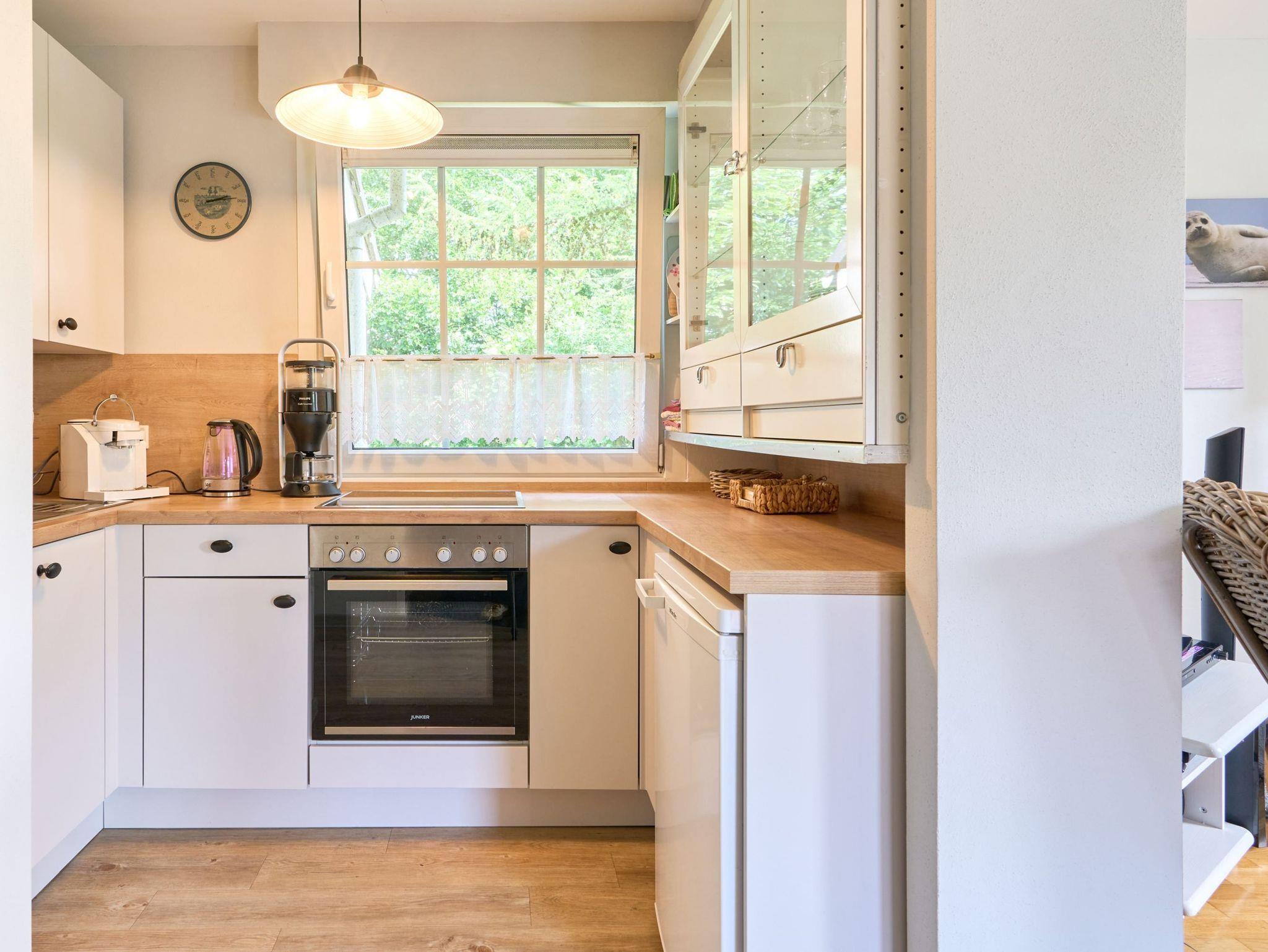 Durch einen Flur, von dem das moderne Bad mit ebenerdiger Dusche und das Schlafzimmer mit Doppelbett abgehen, gelangt Ihr in den Wohnbereich, in dem man entspannt auf dem schönen Sofa Zeit verbringen mag. Eine offene, voll ausgestattete Küche und der freundliche Essbereich im angrenzenden Wintergarten lassen keine Wüsche offen. Das Haus ist durchweg hochwertig ausgestattet.