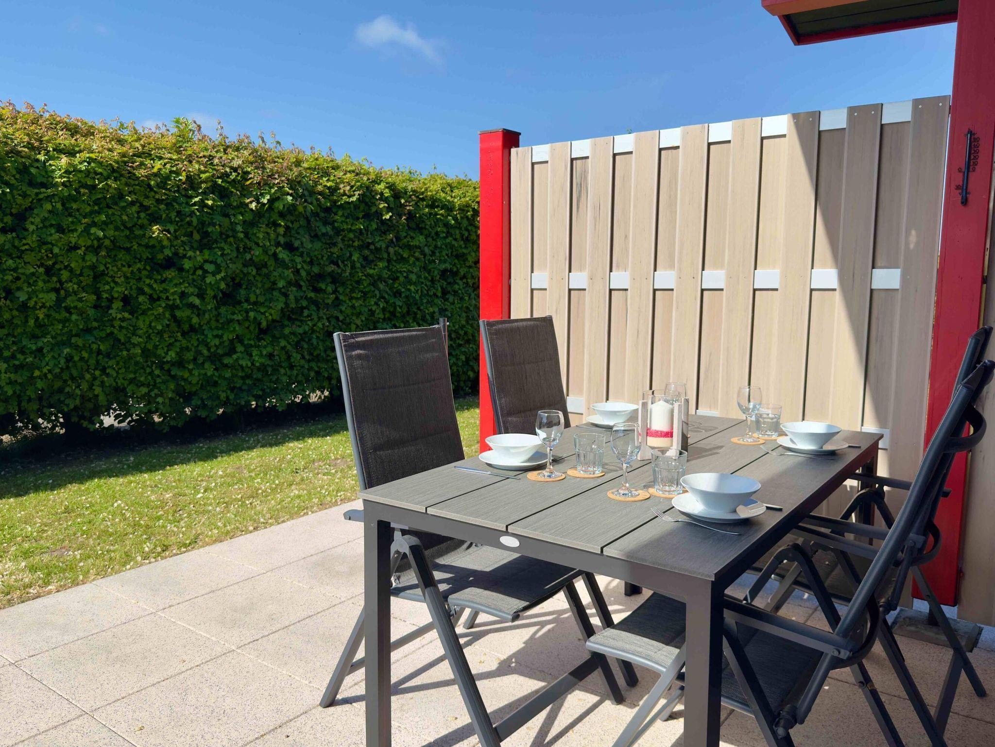 Süd-Terrasse: mit Gartenmöbeln, ideal zum Entspannen und Genießen der frischen Nordseeluft.