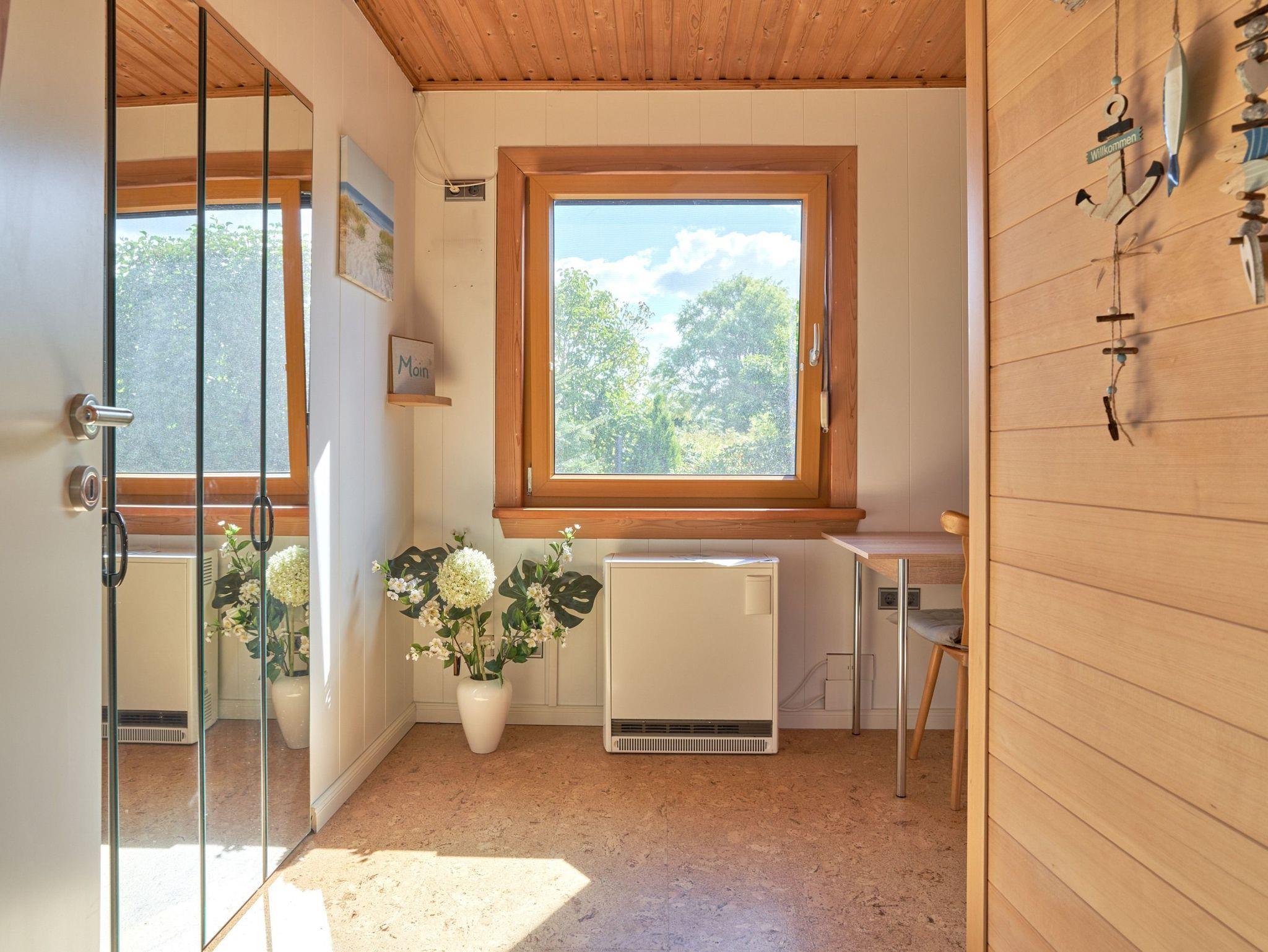 Zwei Hunde sind willkommen; das Grundstück ist voll eingezäunt bzw. durch Hecken begrenzt. Wenn der Vierbeiner einen überdachten Platz draußen bevorzugt, bietet der Windfang eine ideale Gelegenheit.