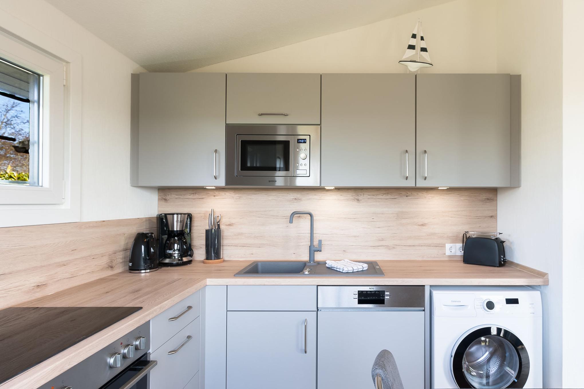 Im Ferienhaus steht kostenloses WLAN zur Verfügung, eine Waschmaschine erleichtert den Alltag, und für