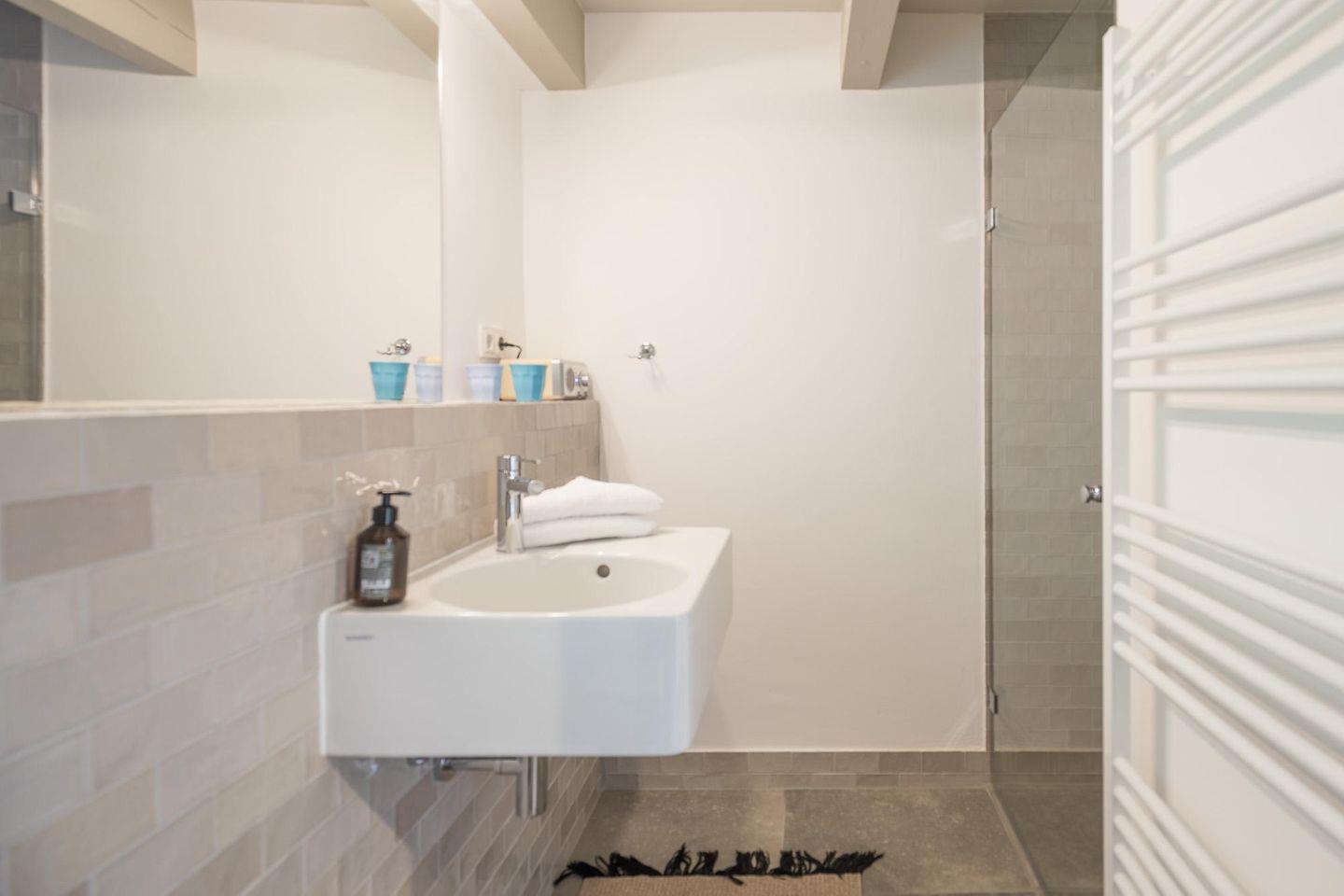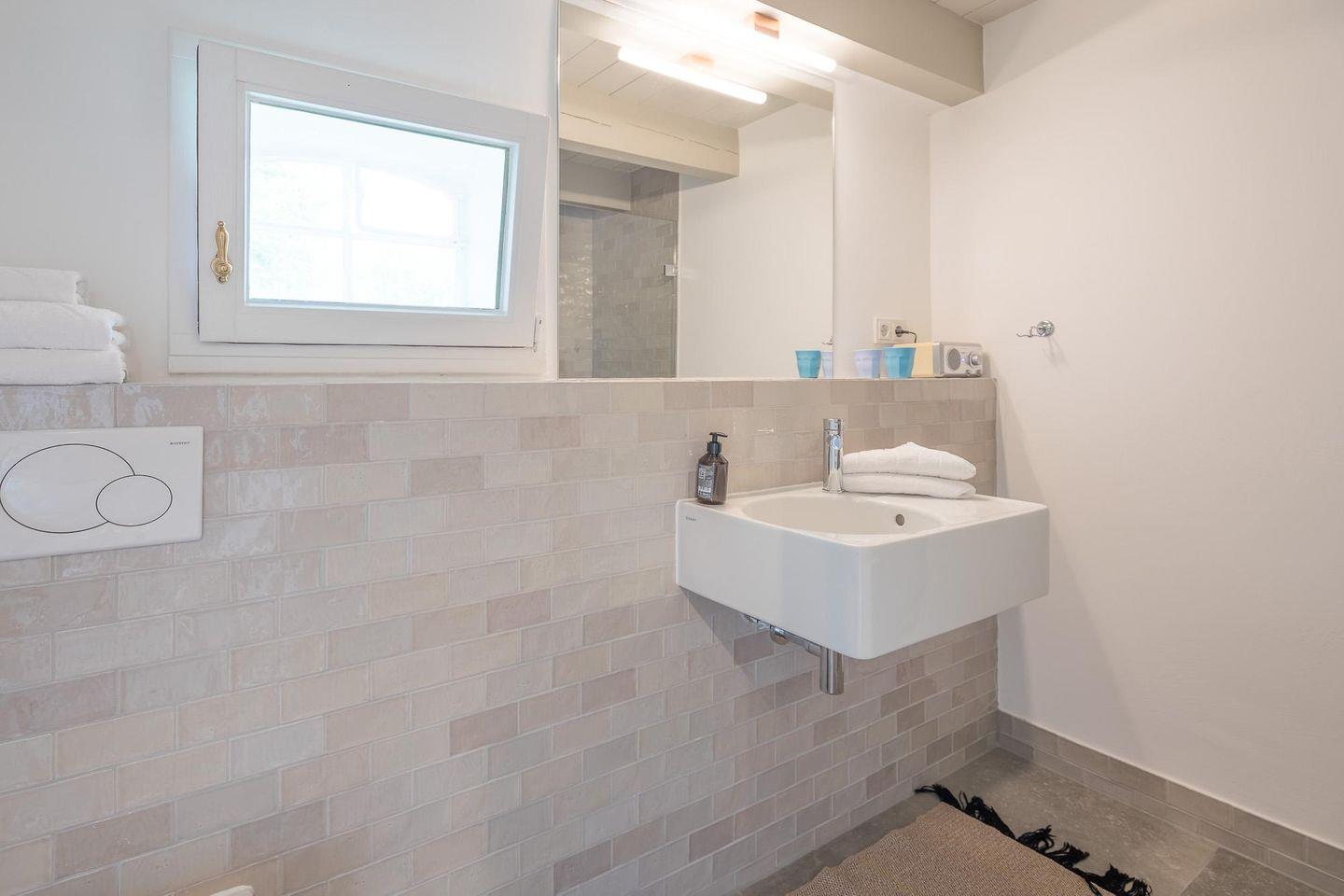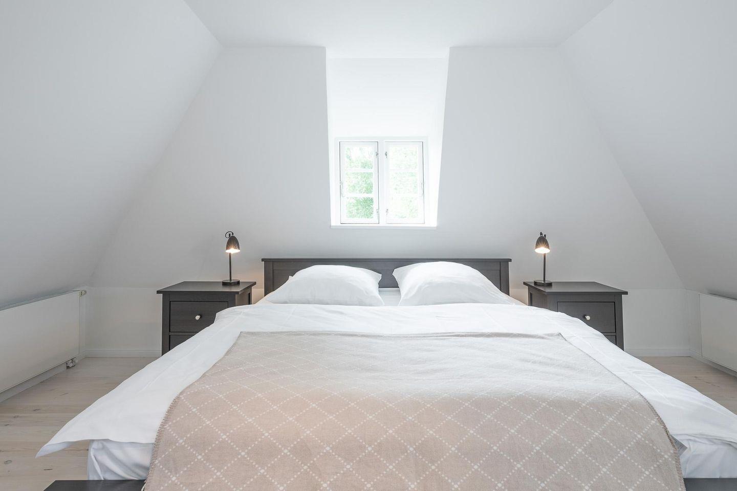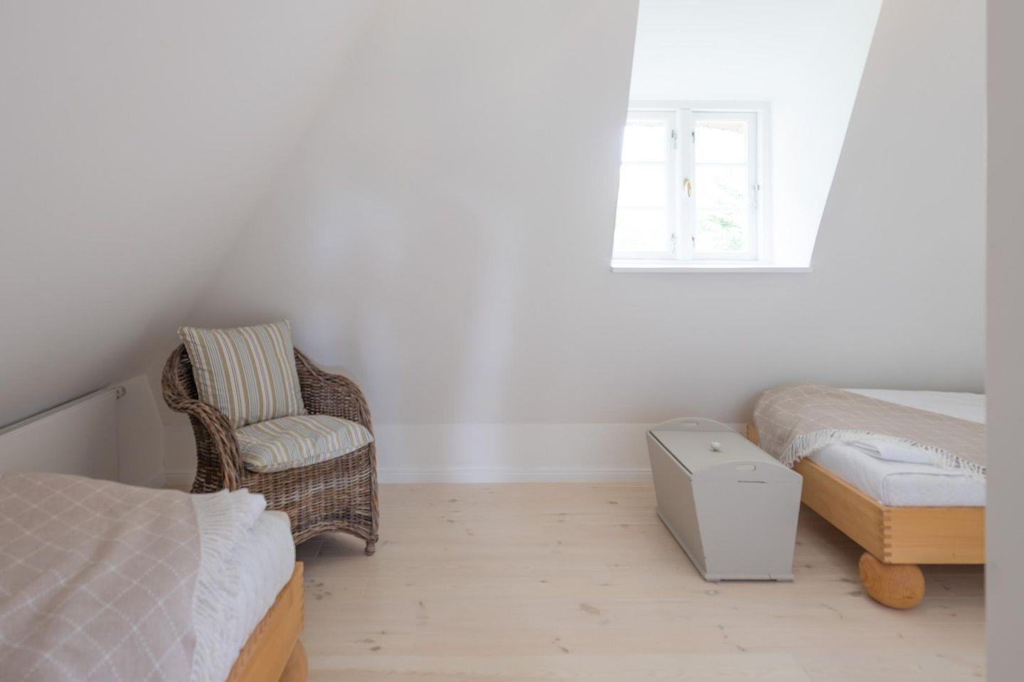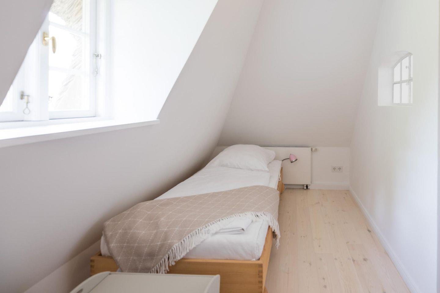 Das moderne Duschbad rundet das Bild im Erdgeschoss ab. Über eine Treppe gelangen Sie zu den beiden Schlafzimmern: das Elternschlafzimmer mit einem komfortablen Doppelbett (180 x 200, Durchgangszimmer) und das zweite Schlafzimmer mit zwei Einzelbetten.