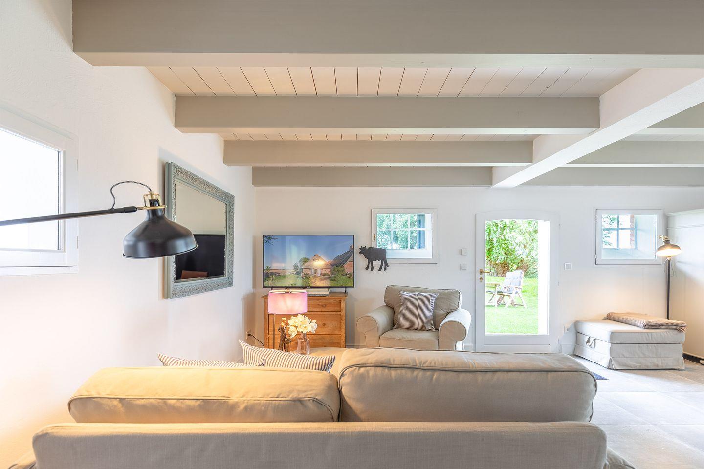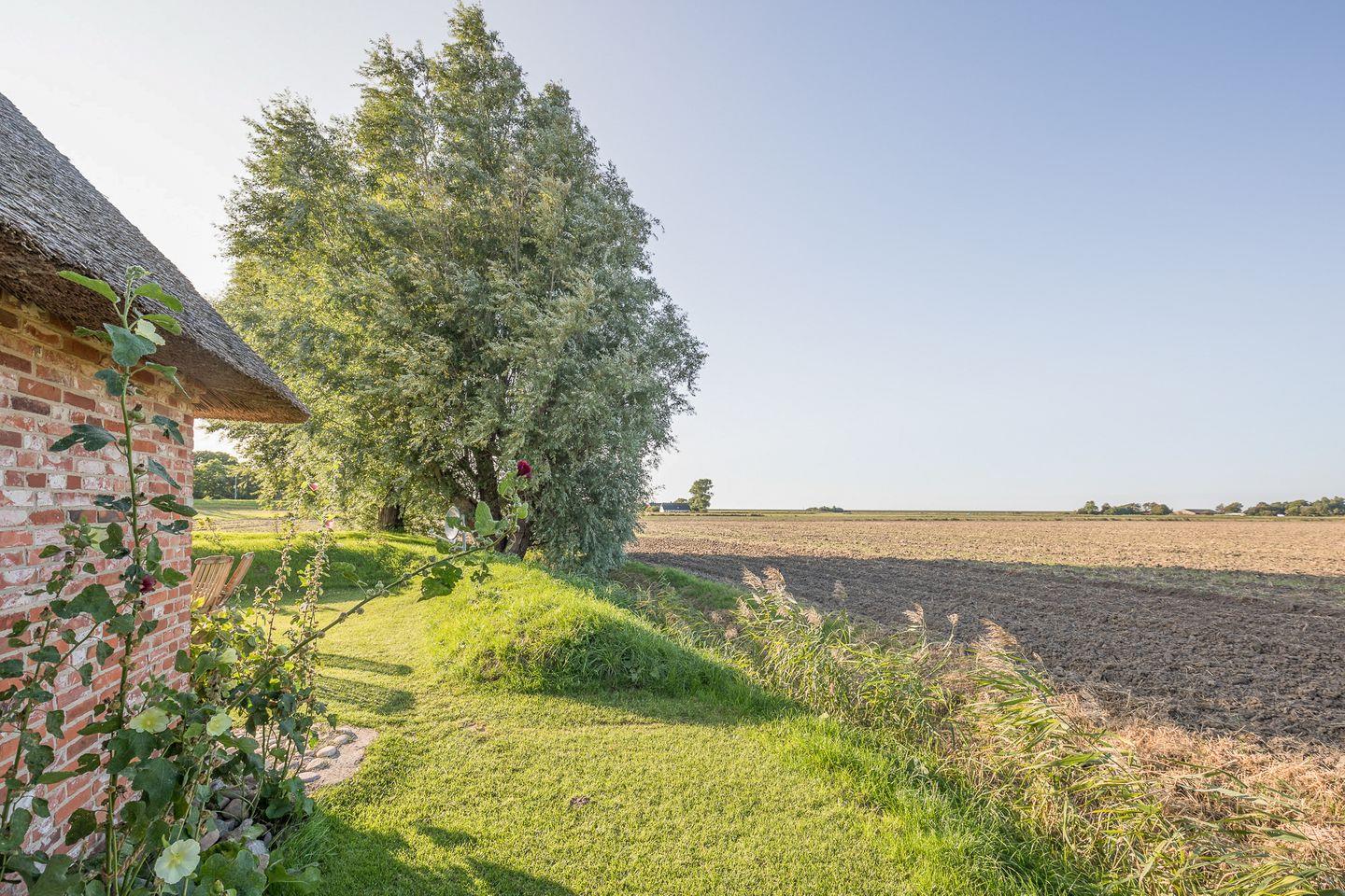 Gemütliche Reetdachkate in Simonsberg mit Kamin, Terrasse und herrlichem Blick über die Felder an der Nordsee.