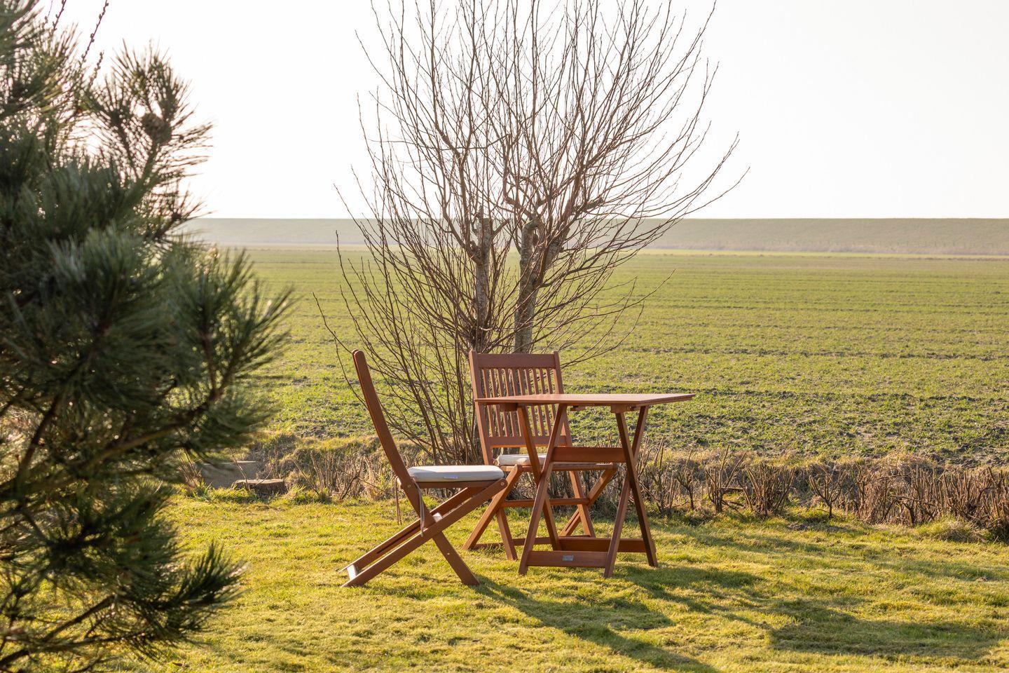 Genießen Sie die Terrasse mit Gartenmöbeln und Sonnenliegen, während der Garten einen herrlichen Blick auf den Deich bietet und zum Entspannen einlädt. Der dazugehörige Schuppen ermöglicht zusätzlichen Stauraum für Gartenmöbel. Zusätzlich können hier Fahrräder oder E-Bikes sicher untergestellt werden. Für Kleinkinder steht ein IKEA Kinderhochstuhl im Kinderzimmer bereit.