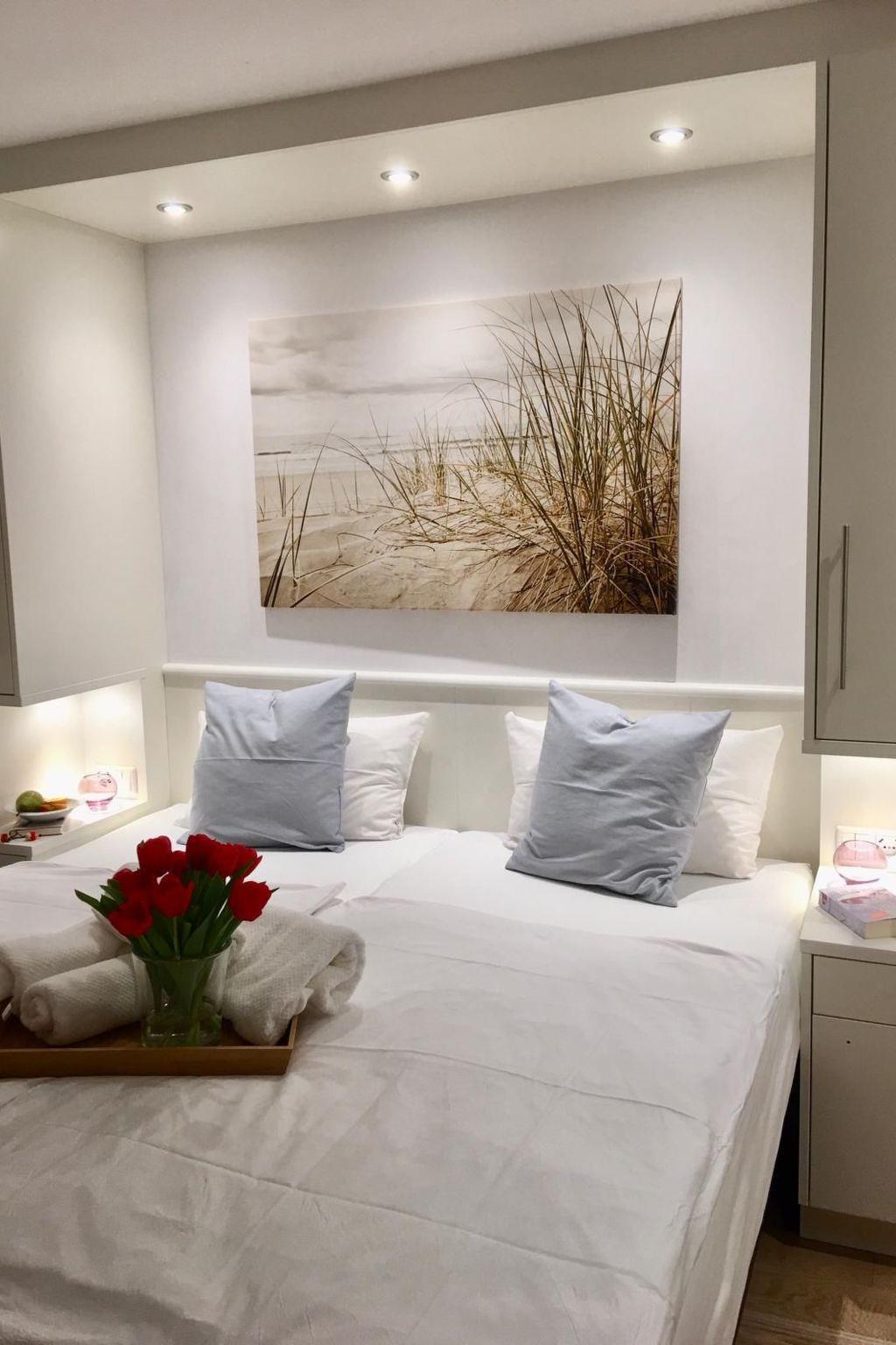 UNTERGESCHOSS 1 Doppelbettzimmer (Premium-Boxspringbetten), Smart-TV-Markengerät, hochwertige Einbaumöbel, 1 Babybett (optional). 1 Duschbad mit Walk-In-Dusche, Regendusche, 1 Sun-Shower/Infrarotlicht. 1 Sauna.