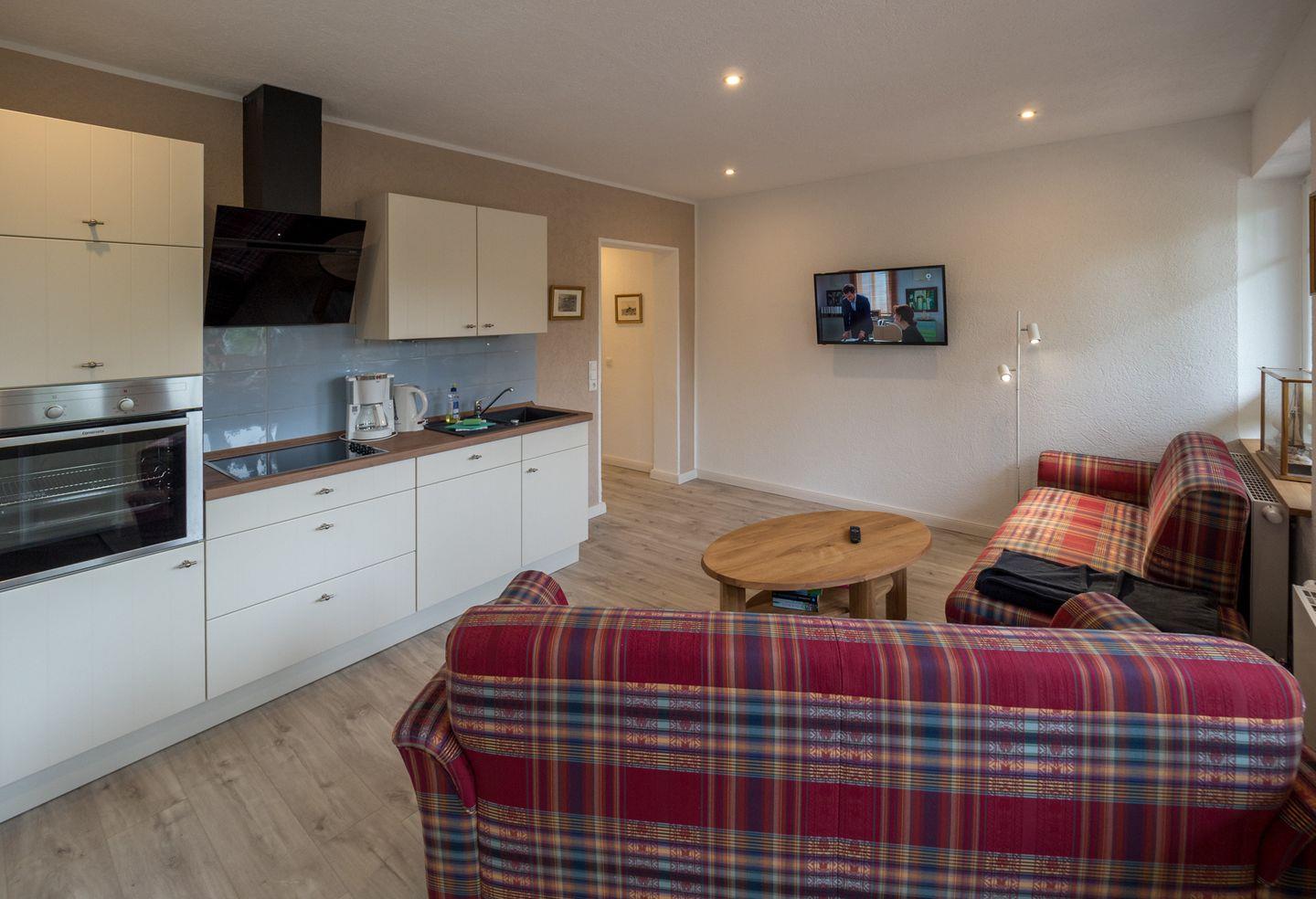 Die gut ausgestattete Wohnung bietet Platz für vier Personen (+ ein Kleinkind). Hat zwei Schlafzimmer, Dusche/WC und Wohn-/Esszimmer mit offener Küchenzeile. Der Essplatz befindet sich in der Veranda oder auch auf der Südterrasse ?. Die Wohnung wurde 2017 kernsaniert und komplett neu eingerichtet. Auf ca. 50 m² ist hier alles auf wunderschönen Urlaub eingestellt ?