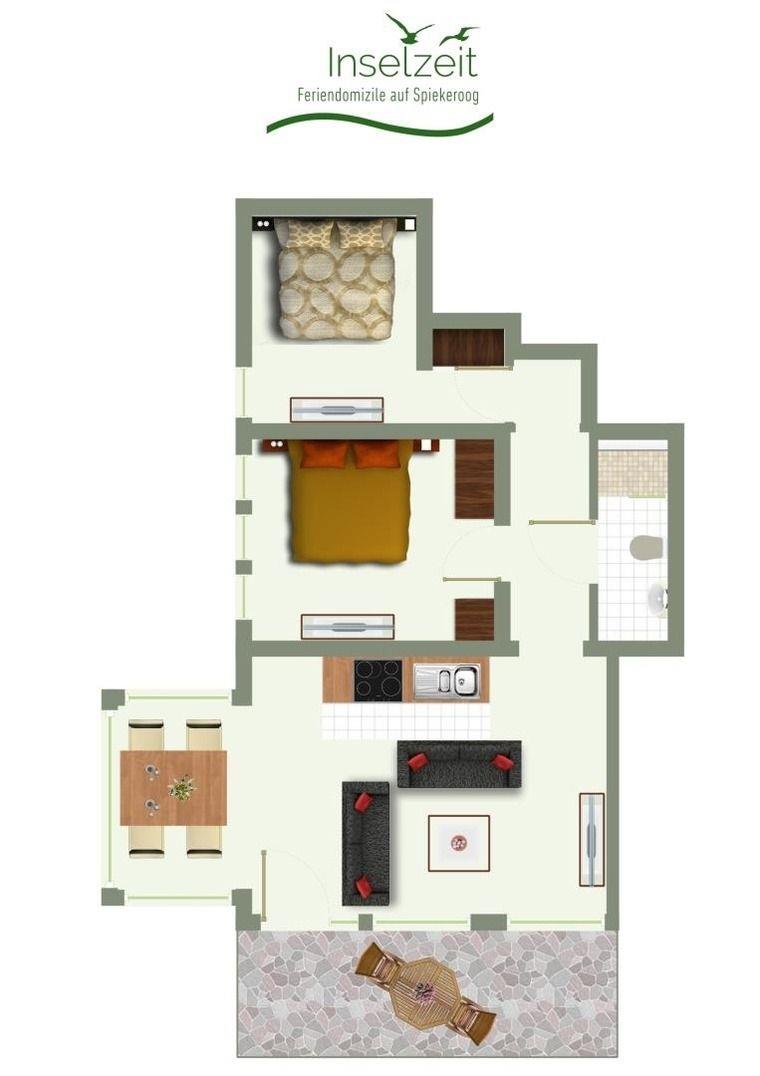 Moderne Ferienwohnung mit Südterrasse im Dorf Spiekeroog, ideal für Familien und entspannte Urlaubstage an der Nordsee.