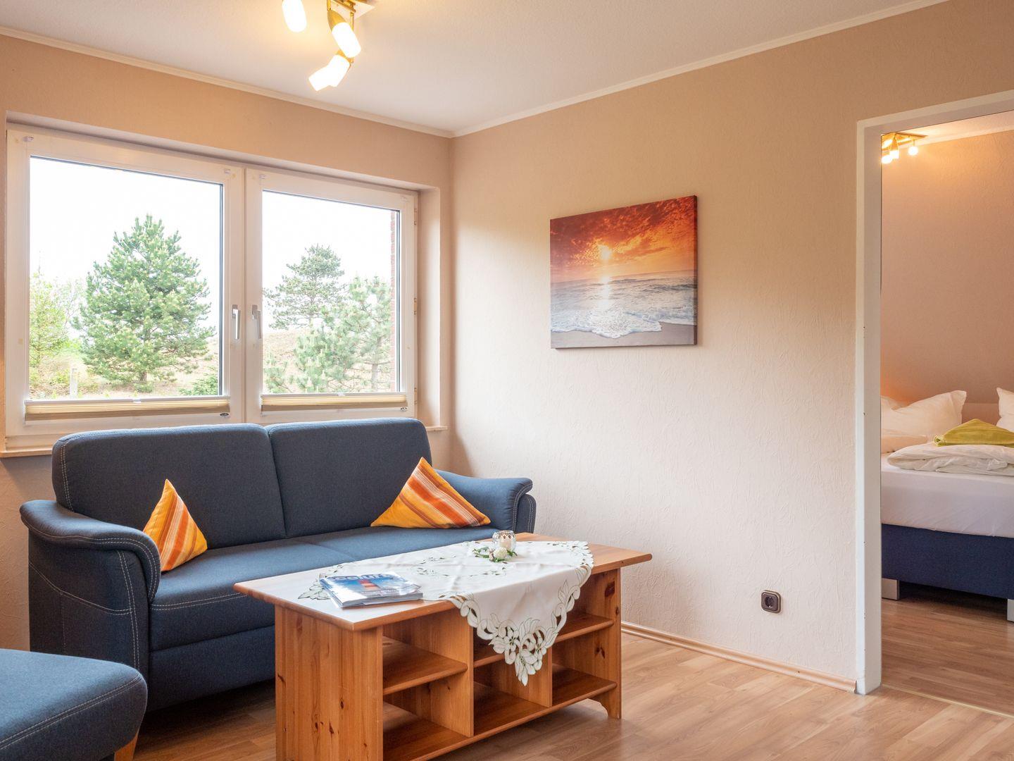 Die Wohnung ist liebevoll mit ausgewählten Möbeln und maritimen Dekorelementen eingerichtet. Das Wohnzimmer verfügt über ein bequemes Sofa, auf denen Sie nach einem Tag am Strand entspannen können.