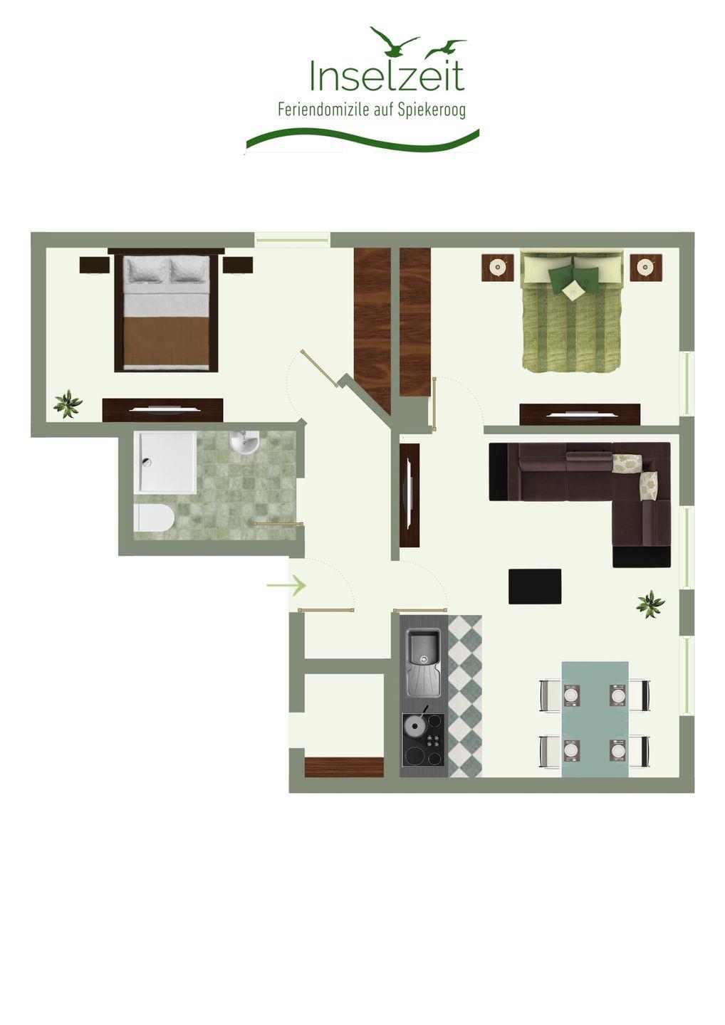 Entdecken Sie unsere wunderschöne Ferienwohnung, die Platz für bis zu fünf Personen und zwei Kleinkinder bietet und Ihnen den idealen Ort für einen erholsamen Urlaub auf der Insel bietet. Mit zwei gemütlichen Schlafzimmern, einem modernen Duschbad/WC und einem einladenden Wohn- und Esszimmer mit Küchenzeile bietet unser Zuhause alles, was Sie für einen entspannten Aufenthalt benötigen.