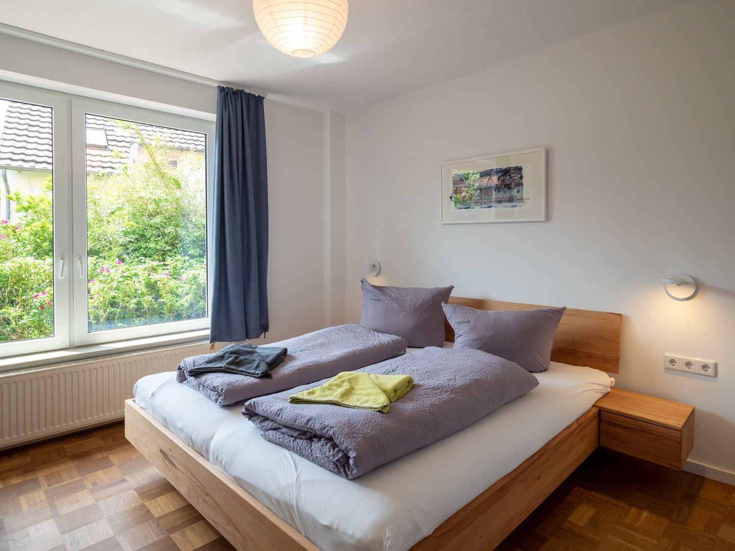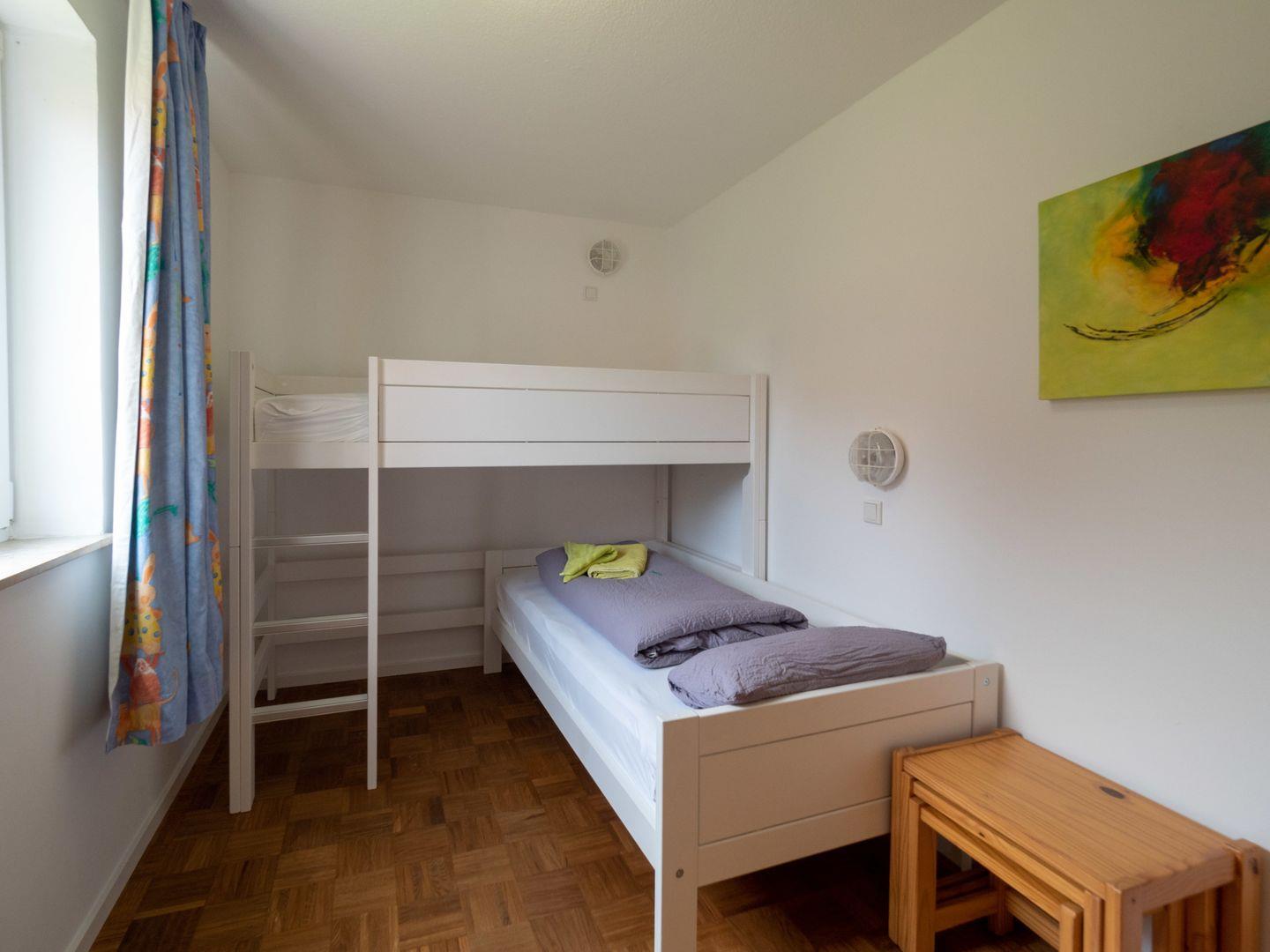 Die großzügige Wohnung bietet Platz für vier Personen und ein Kleinkind. Sie verfügt über zwei Schlafzimmer, eins davon mit gemütlichen Stockbetten, sowie ein Duschbad und ein Gäste-WC. Im Wohn-/Esszimmer mit offener Küchenzeile können Sie gemeinsame Mahlzeiten zubereiten und den Tag gemütlich ausklingen lassen.