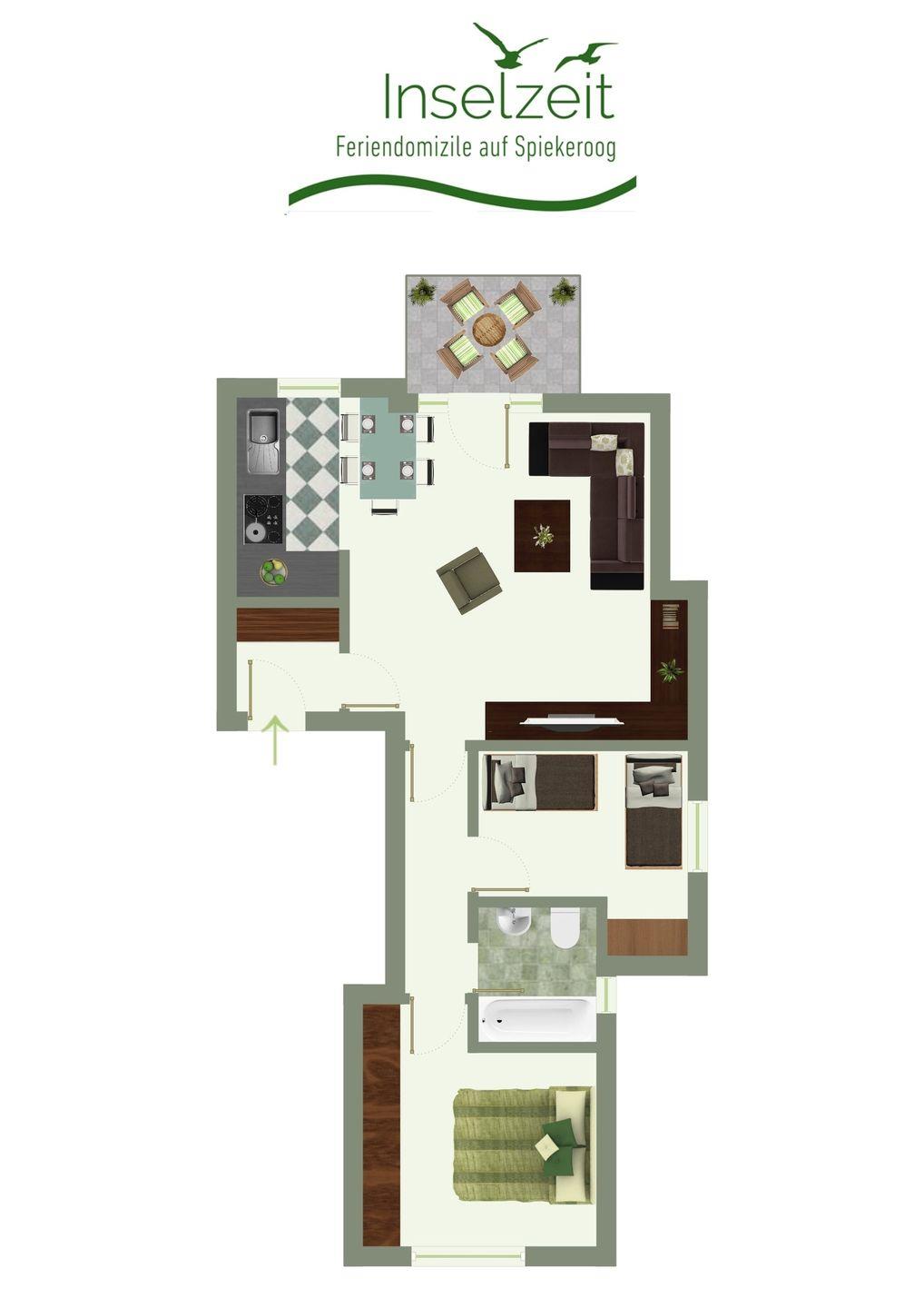 Moderne Ferienwohnung mit Süd-West-Terrasse und Strandkorb im Osten von Spiekeroog.