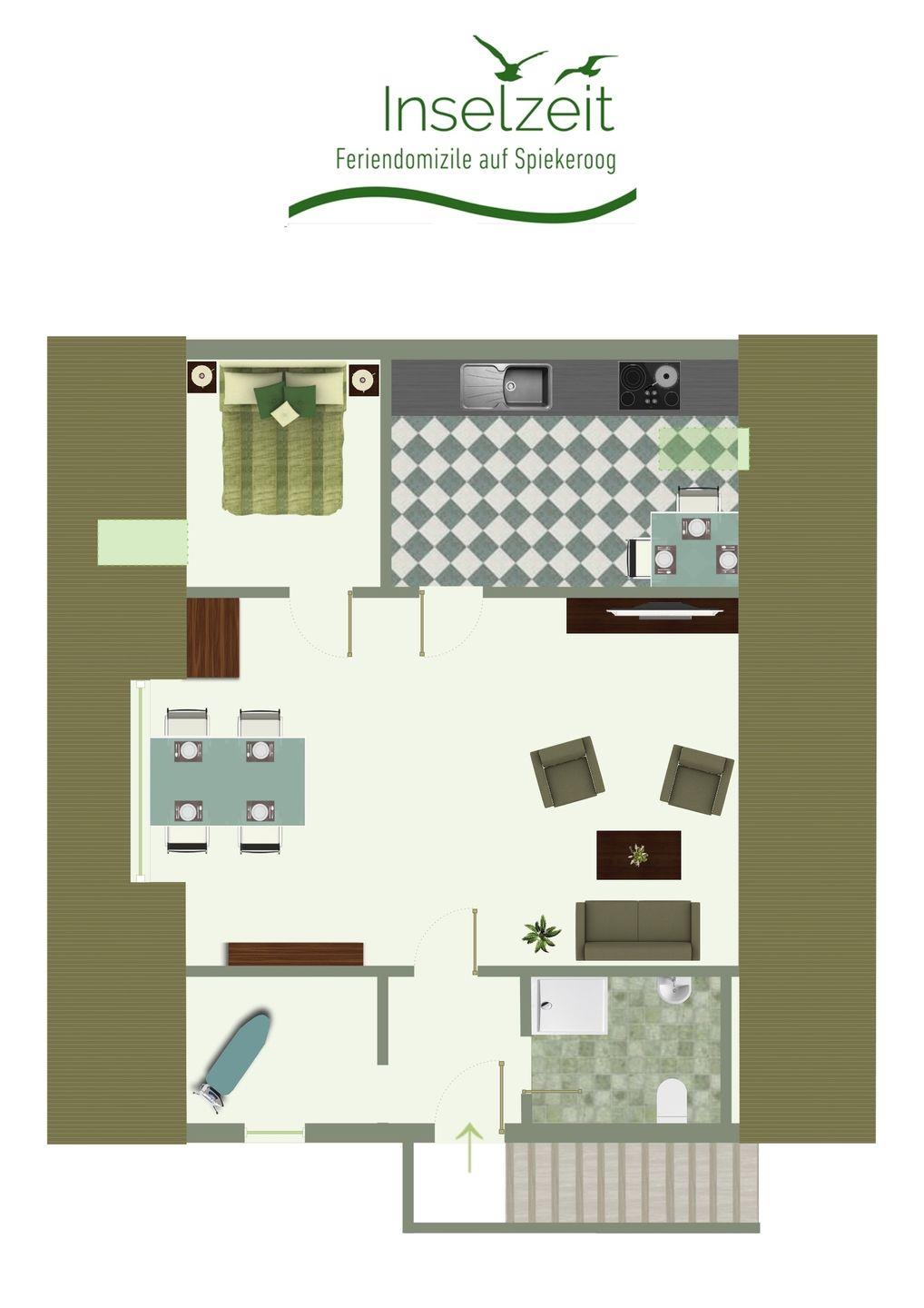 Moderne Ferienwohnung Karkstuuv im Dorfkern von Spiekeroog, ideal für entspannte Auszeiten an der Nordseeküste.