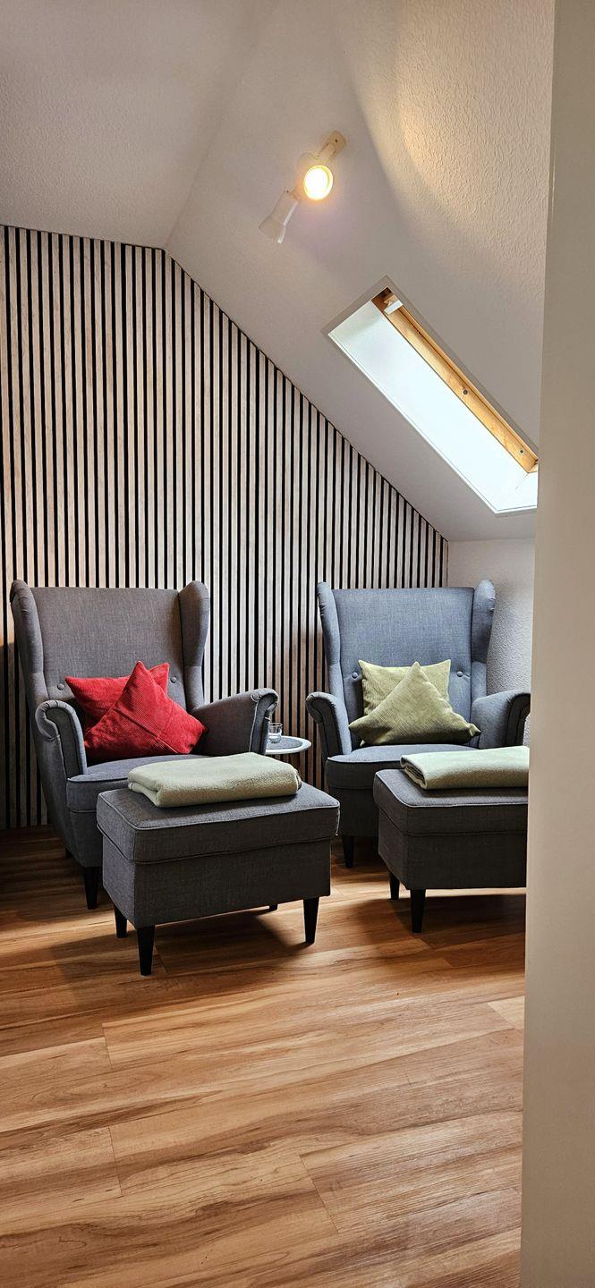 Das Apartment ist vollständig ausgestattet und richtet sich sowohl an Paare als auch an alleinreisende Gäste, die auf Komfort und praktische Ausstattung Wert legen. Das kombinierte Wohn- und Esszimmer ist mit einem Esstisch und Sesseln eingerichtet. Für entspannte Stunden steht ein Kabel-TV zur Verfügung. Die Fenster sorgen für angenehmes Tageslicht und ein freundliches Ambiente. Das Schlafzimmer bietet zwei Schlafmöglichkeiten. Bettwäsche und Handtücher sind bereits im Mietpreis inbegriffen und werden als Erstausstattung bereitgestellt.