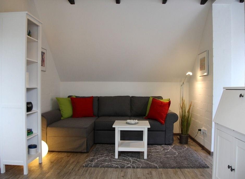 Das wohnliche Apartment ist vollständig als Nichtraucherunterkunft ausgewiesen und mit kostenfreiem WLAN ausgestattet. Der offene Wohn- und Essbereich ist modern und praktisch gestaltet. Ein voll ausgestatteter Küchenbereich mit 4-Platten-Herd, Backofen, Mikrowelle, Kühlschrank mit Gefrierfach, Spülmaschine, Kaffeemaschine, Toaster und Wasserkocher steht Ihnen zur Verfügung. Essbereich, Sofaecke sowie ein bequemer Sessel gestalten den Wohnraum einladend und komfortabel. Ergänzt wird der Wohnbereich durch einen eigenen überdachten Balkon, der zum Verweilen im Freien einlädt.