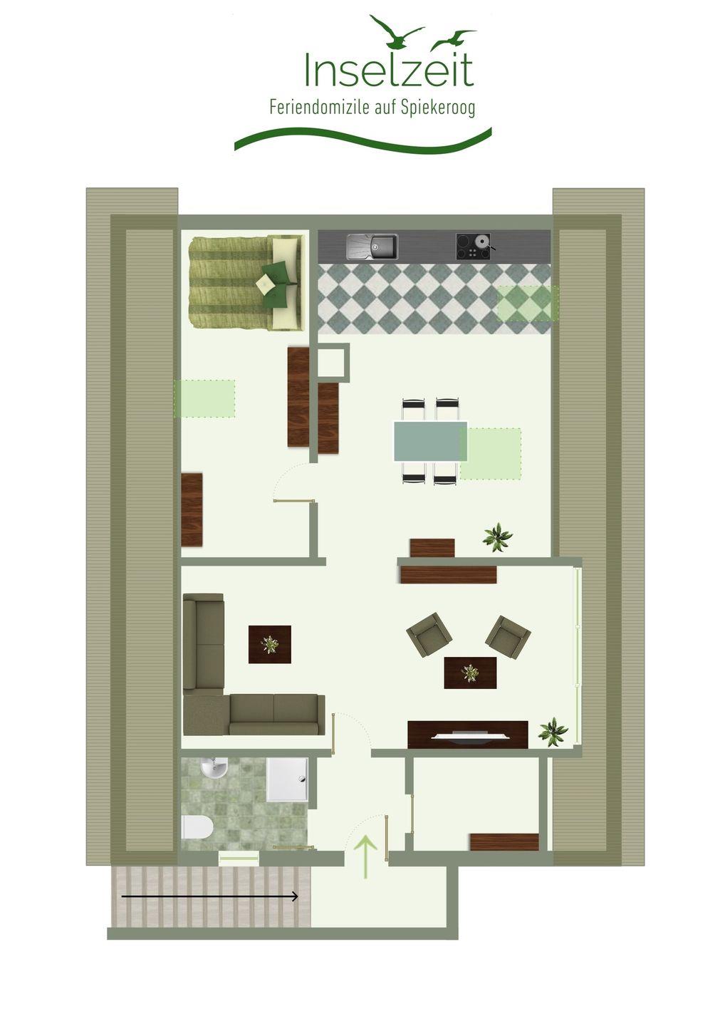 Gemütliche Ferienwohnung Am Süderloog auf Spiekeroog mit Balkon, WLAN und moderner Ausstattung, ideal für erholsame Nordseeaufenthalte.