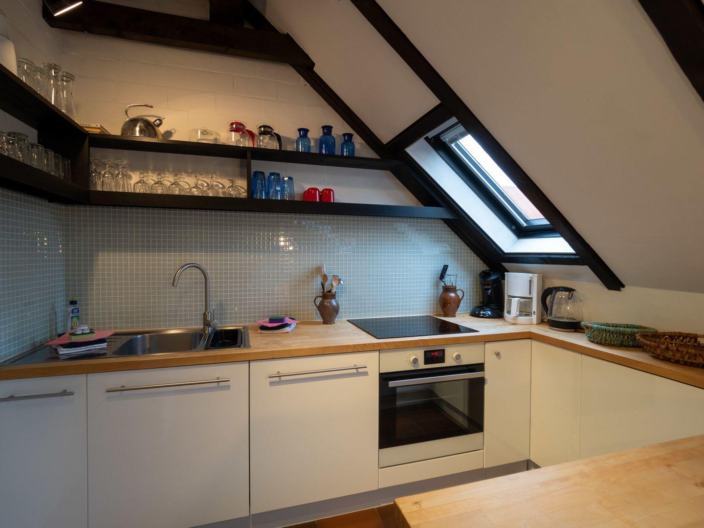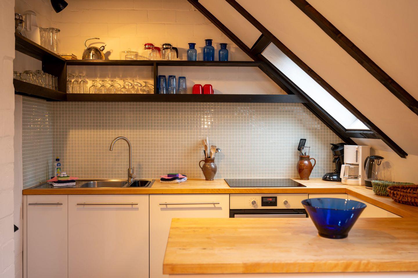 Der Wohnbereich empfängt Sie mit einer gemütlichen Sofaecke und sorgt für behagliche Abende. Ein separater Essbereich mit Esstisch lädt zu gemeinsamen Mahlzeiten ein. Die offene Küche ist vollständig ausgestattet und ermöglicht Ihnen eine individuelle Selbstversorgung: Ein 4-Platten-Herd, Backofen, Kühlschrank mit Gefrierfach, Spülmaschine, Kaffeemaschine, Wasserkocher, Toaster und umfassendes Geschirr sowie Besteck stehen bereit. Küchenutensilien und Geschirrhandtücher sind vorhanden, sodass Sie direkt starten können. Für zusätzlichen Komfort sorgen ein Staubsauger und eine Waschmaschine.