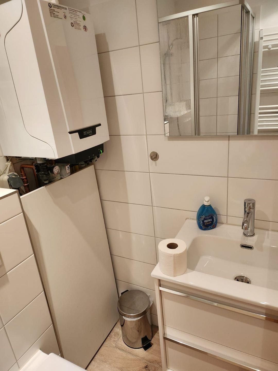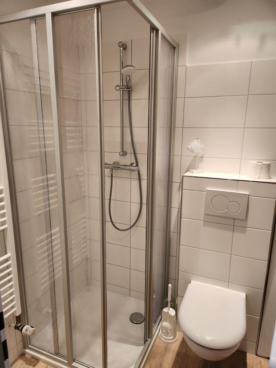 Die Unterkunft verfügt über ein separates Schlafzimmer und eine zusätzliche Schlafmöglichkeit, sodass insgesamt drei Schlafplätze zur Verfügung stehen. Das Badezimmer ist mit Dusche, WC und Haartrockner ausgestattet. Für einen angenehmen Aufenthalt sind Bettwäsche und Handtücher bereits vorhanden; eine Erstausstattung sowie ein Staubsauger stehen bereit.