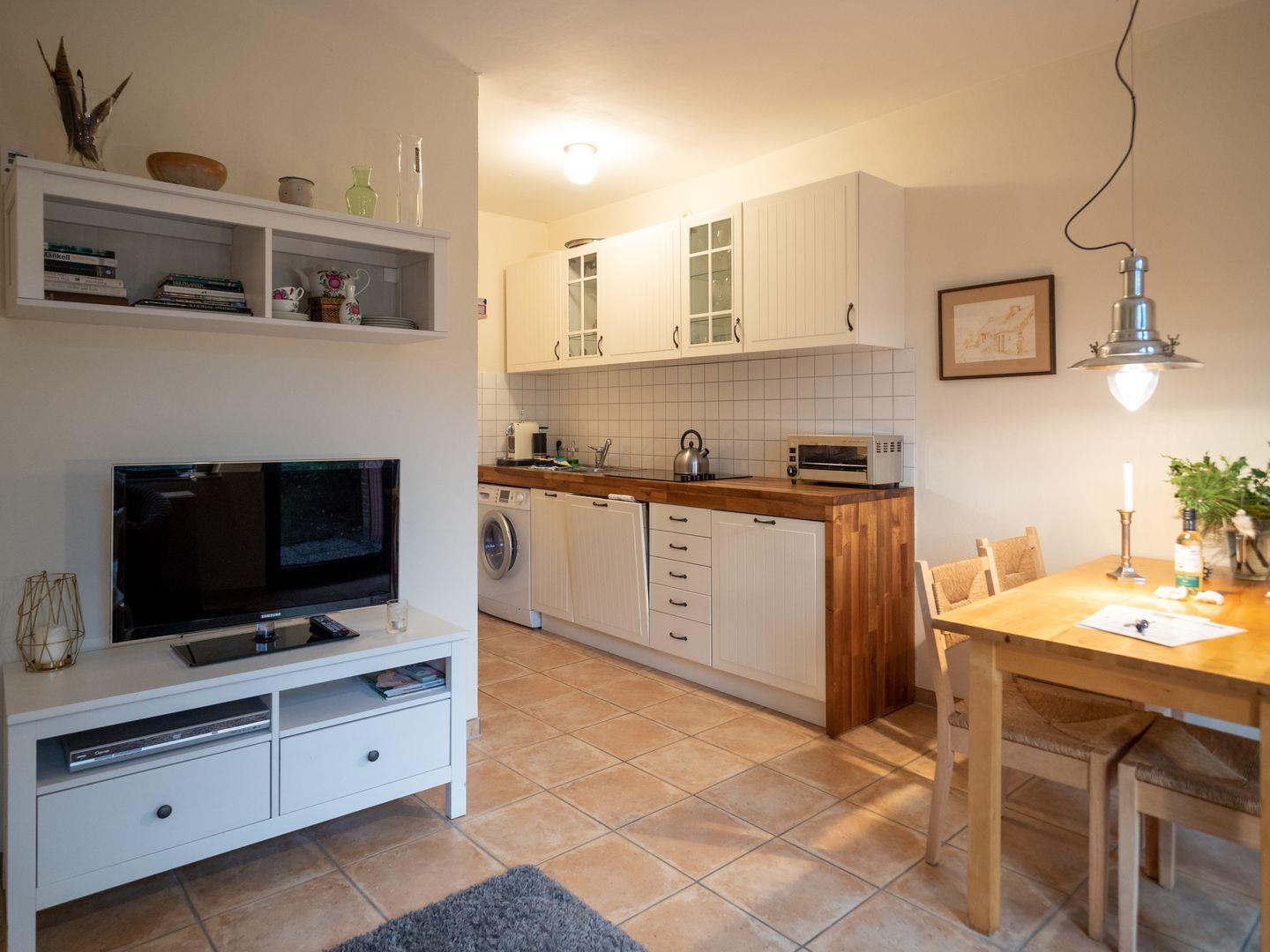 Die modern ausgestattete Küche umfasst eine Spülmaschine, einen Kühlschrank mit Gefrierfach, eine Kaffeemaschine, Toaster, 4-Platten-Herd, Geschirr, Besteck, Küchenutensilien sowie Geschirrhandtücher. Ein separater Essbereich samt Esstisch lädt zu gemeinsamen Mahlzeiten ein. Für zusätzlichen Komfort sorgen eine Waschmaschine, Bettwäsche, Handtücher und ein Staubsauger, die Ihnen unkompliziert zur Verfügung stehen.