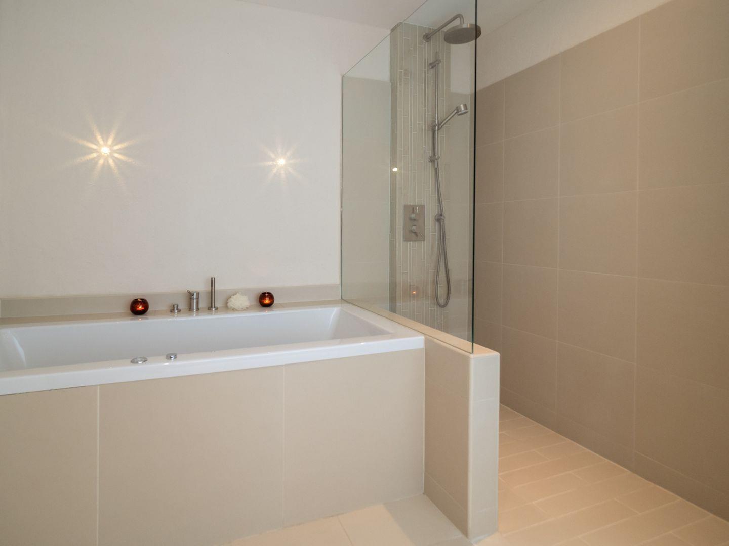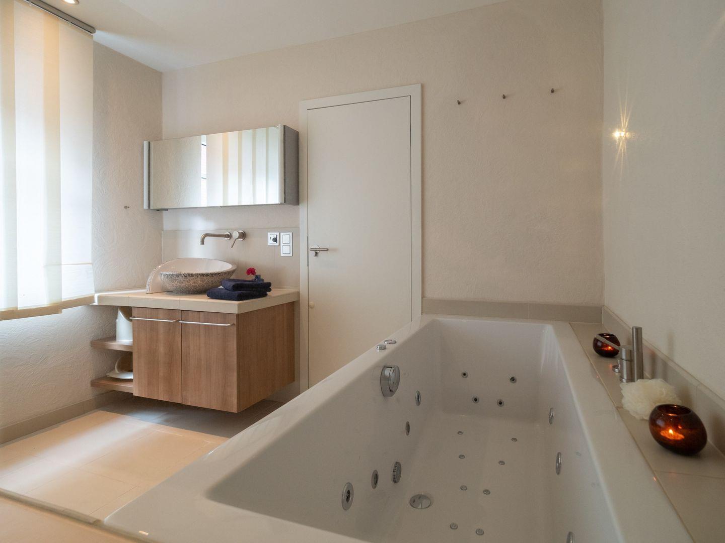 Das Badezimmer ist mit einer Regenschauerdusche sowie einer besonderen Whirlwanne mit Farblichtspiel ausgestattet, die besonders in der kalten Jahreszeit für Entspannung sorgt.