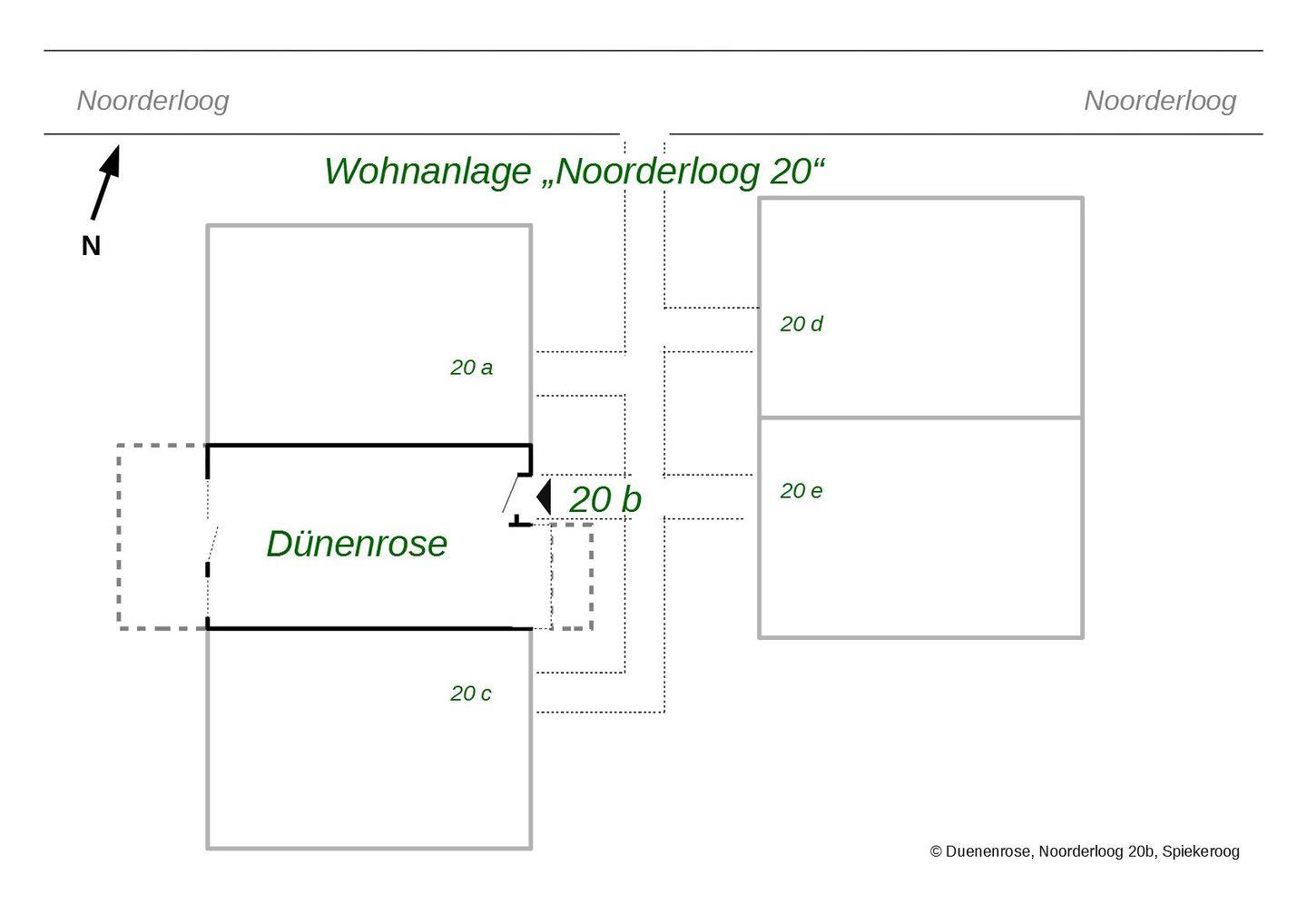 In der Wohnanlage "Noorderloog 20" erwartet Sie im Ortskern von Spiekeroog in bester Lage das 2016 erbaute Haus "Dünenrose". Das Mittelhaus Noorderloog 20b besteht aus einer Ferienwohnung mit 60 m² über zwei Etagen. Hoher Wohnkomfort und eine gehobene Ausstattung zeichnen die Wohnung für max. drei Personen aus.