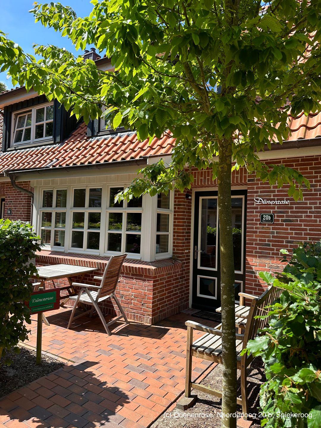 Eine Terrasse mit Gartenmöbeln nach Südwesten und ein Sitzplatz nach Südosten stehen für die alleinige Nutzung durch die Gäste der "Dünenrose" zur Verfügung ?.