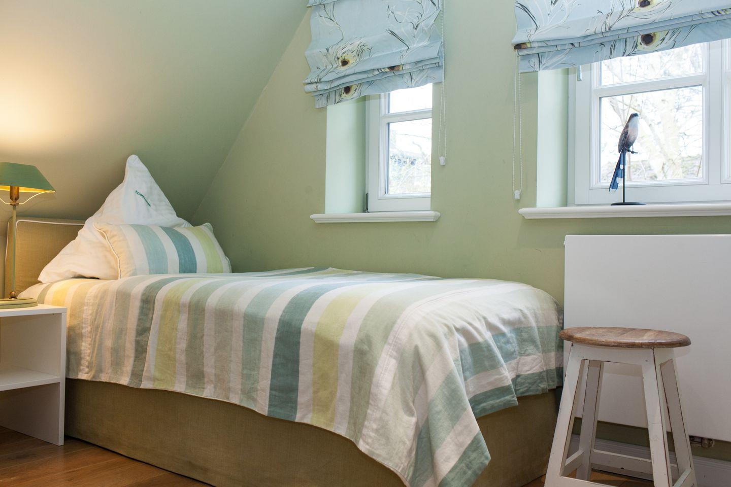 Die liebevolle Gestaltung spiegelt die Farben der Insel wieder. Der helle Wohnraum und die nostalgische Landhausküche laden zum Wohlfühlen, Entspannen und Beisammensein ein. Ins Dachgeschoss kann man sich auch mal zurückziehen, dort befinden sich 3 Schlafzimmer und ein Badezimmer.