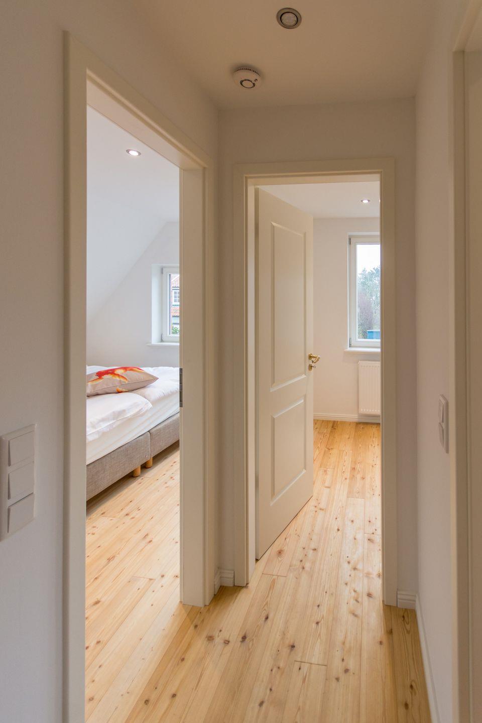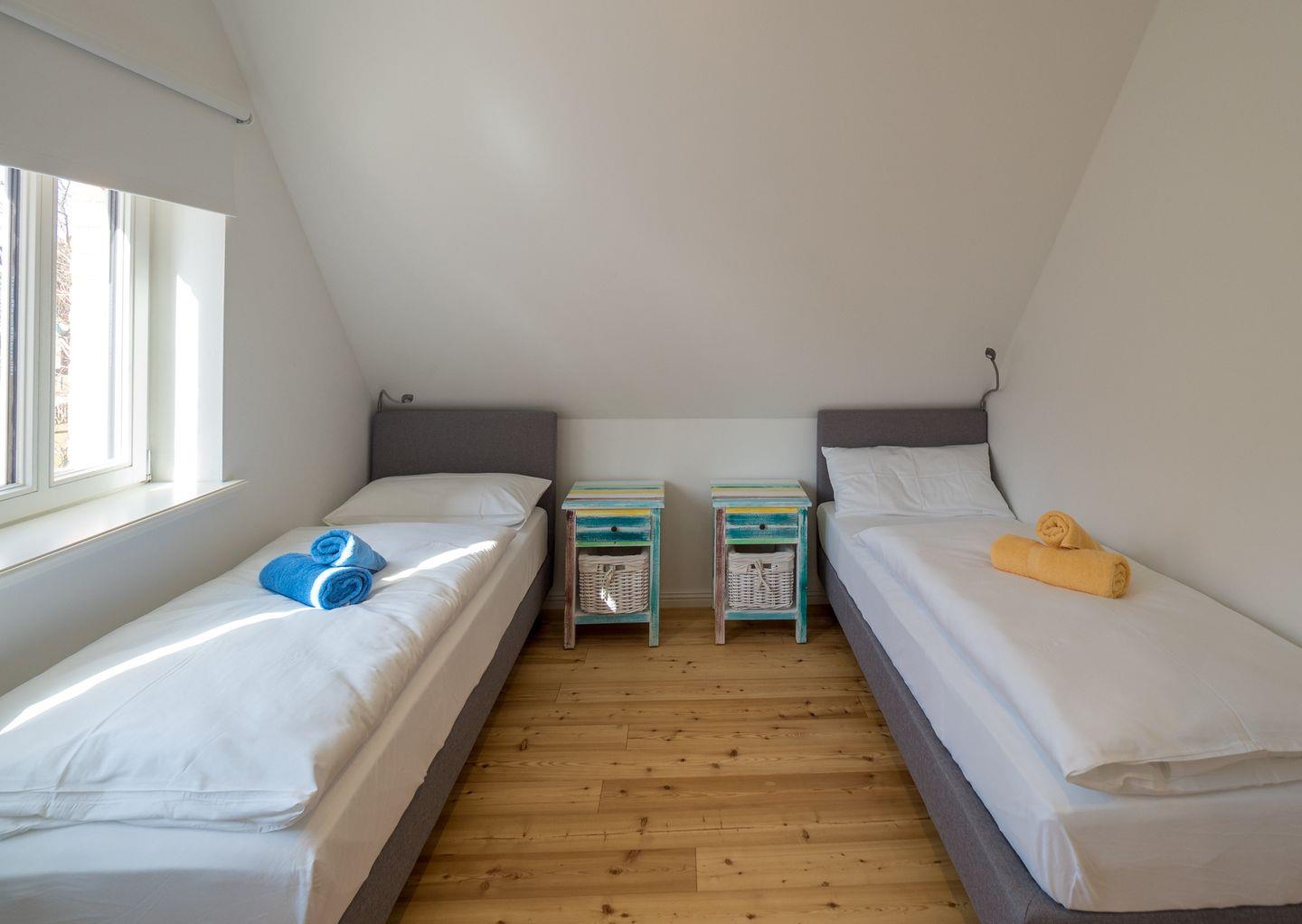 Die beiden Schlafzimmer im Obergeschoss sind mit 4 Luxus Boxspringbetten (ein Doppel, zwei Einzel) ausgestattet. Weitere Reisebetten sind möglich. Ein Bad mit Dusche ist ebenfalls vorhanden.