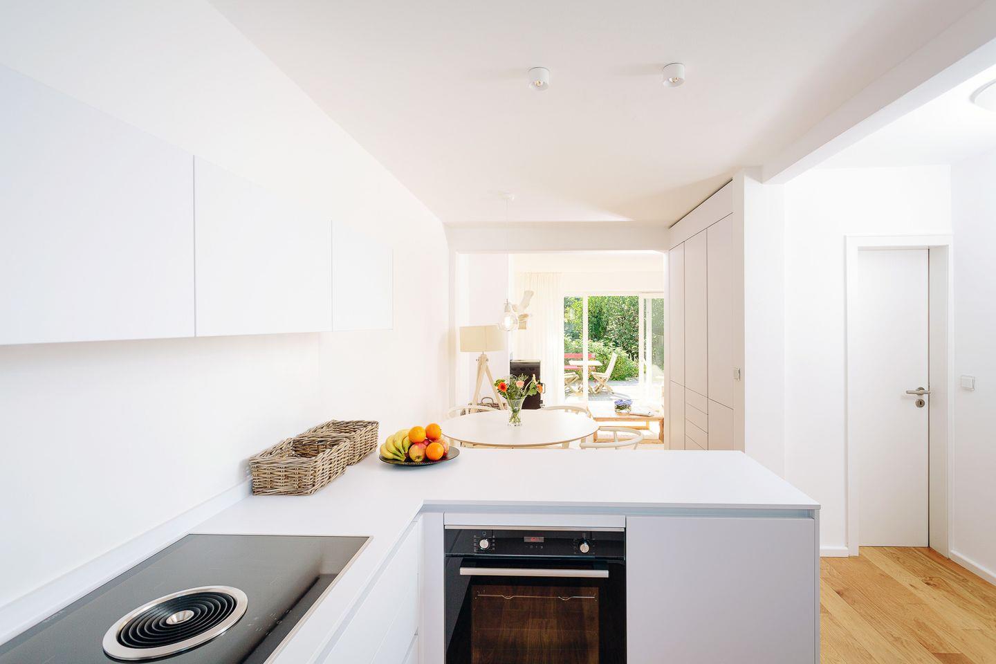 Die hochmoderne, offene Küche ist vollausgestattet mit Induktionsherd, Spülmaschine, und allem anderen, was Sie zum Kochen benötigen. Für die Mahlzeiten stehen für Kinder Kinderstühle und unkaputtbares Rice-Melanin-Geschirr bereit. Waschmaschine und Wäschetrockner sorgen dafür, dass Sie nicht zu viel Gepäck mitnehmen müssen.