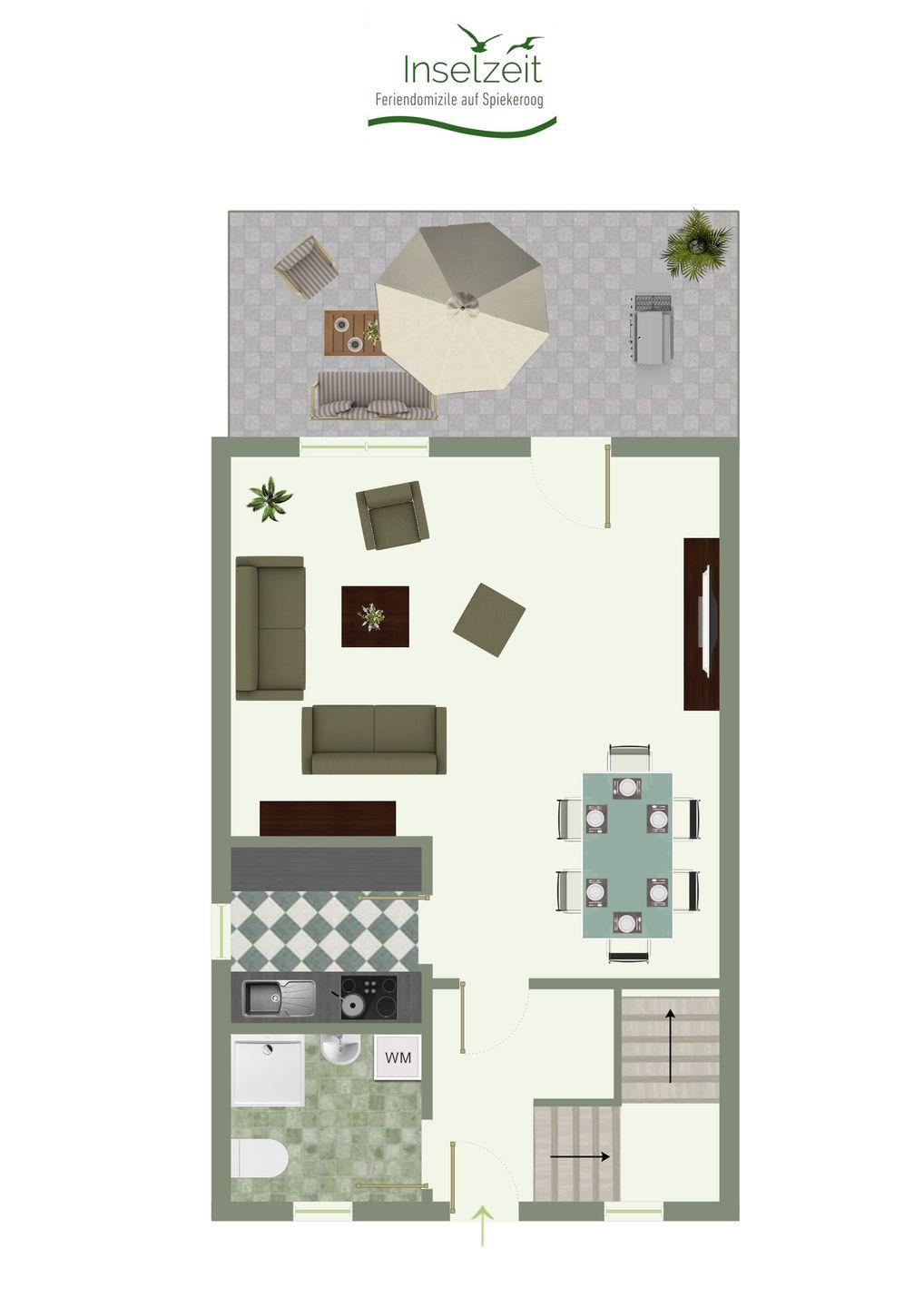 Gemütliche Doppelhaushälfte Deichblick auf Spiekeroog mit Terrasse, WLAN und Strandkorb, ideal für Familien und Aktivurlauber.