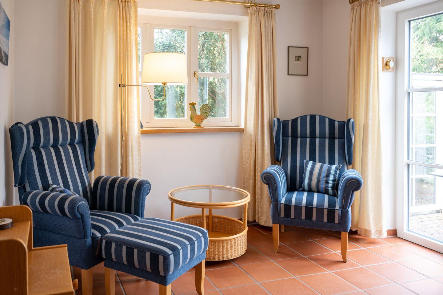 Für Familien bestechen besonders die zahlreichen Details: Auf der Terrasse lädt ein Strandkorb zum Entspannen ein, und ein Bollerwagen erleichtert Ausflüge zum nahen Strand, der in etwa 1.200 Metern zu Fuß erreichbar ist. Im Außenbereich erwartet Sie außerdem eine gepflegte Terrasse, die zu ausgedehnten Stunden im Freien einlädt. Die Ausstattung wird durch Fliegengitter, Waschmaschine und Trockner für maximalen Komfort ergänzt. WLAN steht im gesamten Haus kostenfrei zur Verfügung, sodass Sie auch während Ihres Inselaufenthaltes flexibel bleiben.