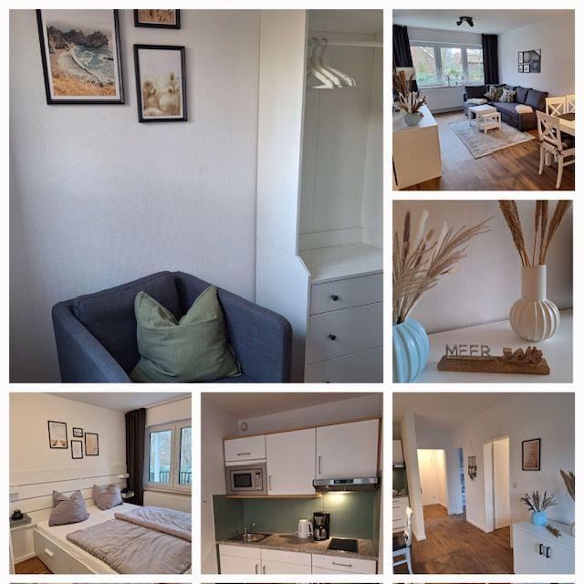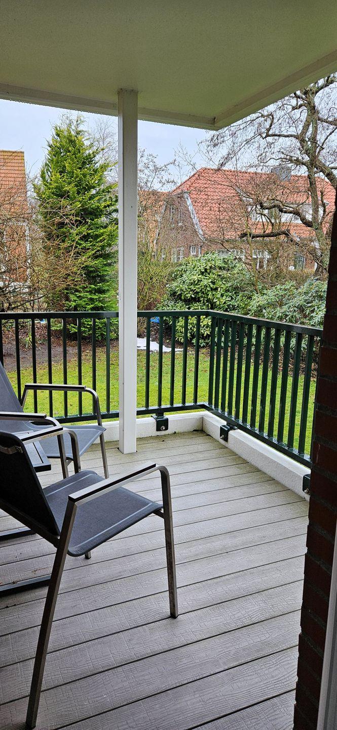 Gemütliches 3-Zimmer-Appartement mit Balkon in zentraler Lage auf Spiekeroog, ideal für erholsamen Urlaub mit Sauna und Supermarkt nebenan.