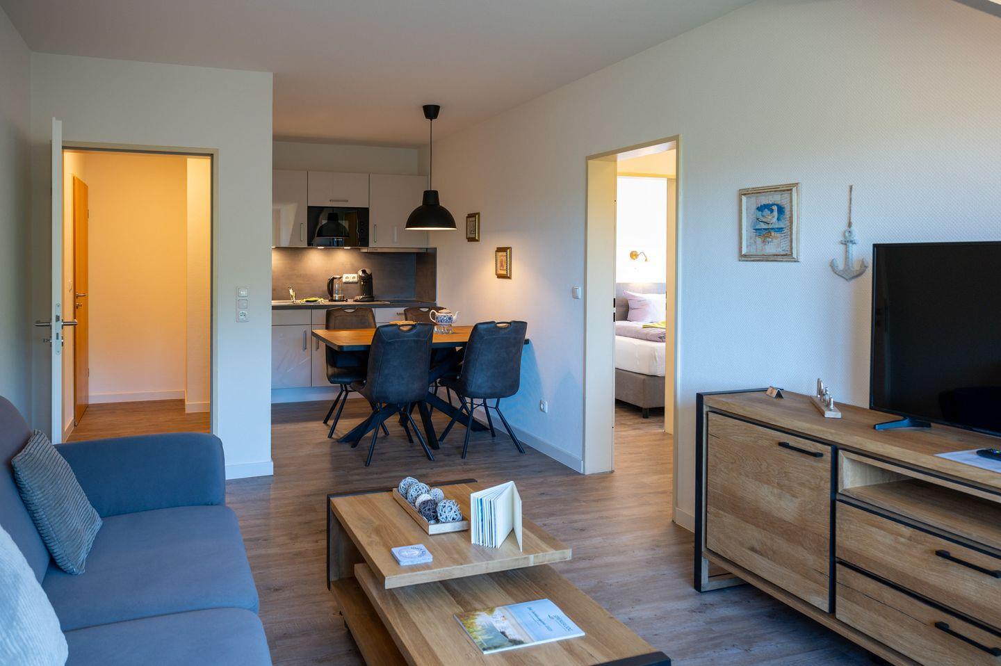 Modernes 3-Zimmer-Appartement zentral auf Spiekeroog, mit Sauna, Garten und Nähe zum Supermarkt für erholsamen Urlaub.