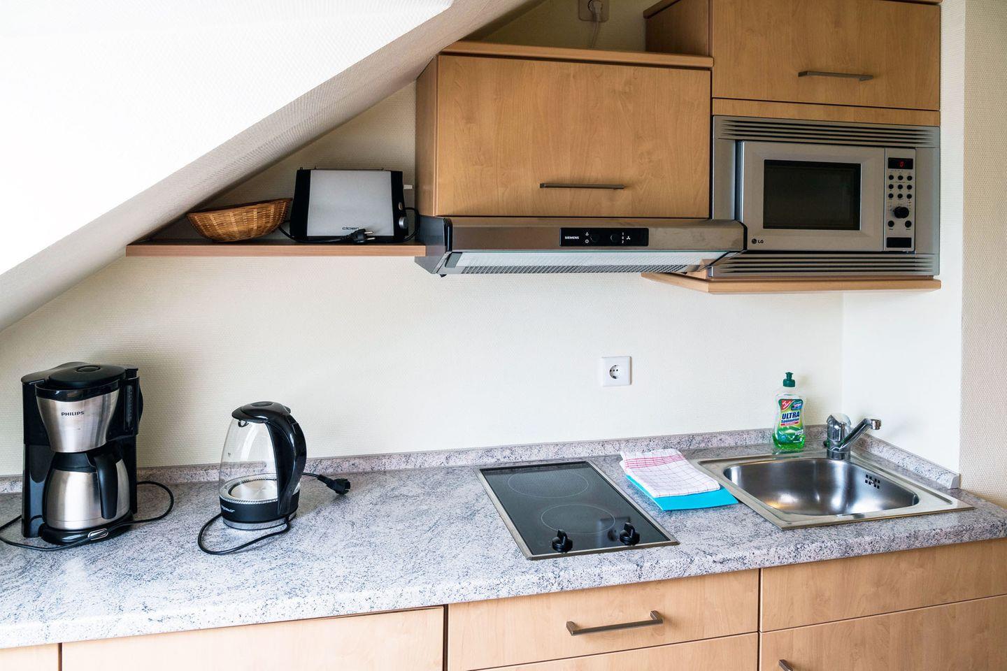 Eine Sauna im Haus heizt ein, wenn das Wetter sich mal friesisch-frisch zeigt. Gerade Familien freuen sich über Waschmaschine und Trockner im Haus.