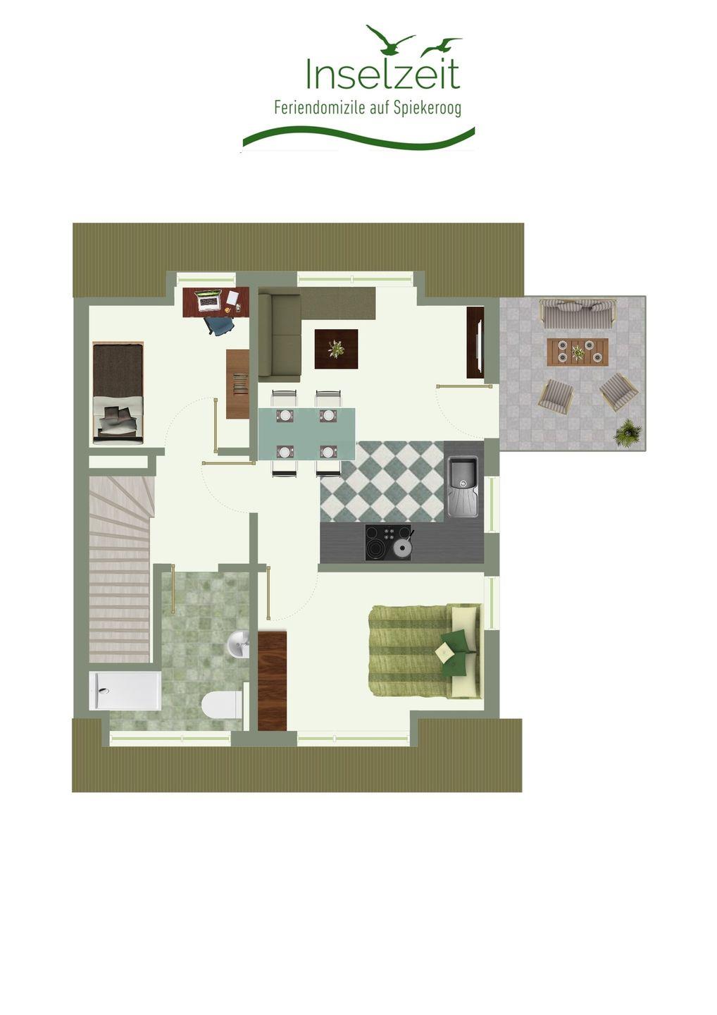 Moderne Ferienwohnung auf Spiekeroog mit hochwertiger Ausstattung und Balkon, ideal für erholsamen Urlaub in zentraler Lage.
