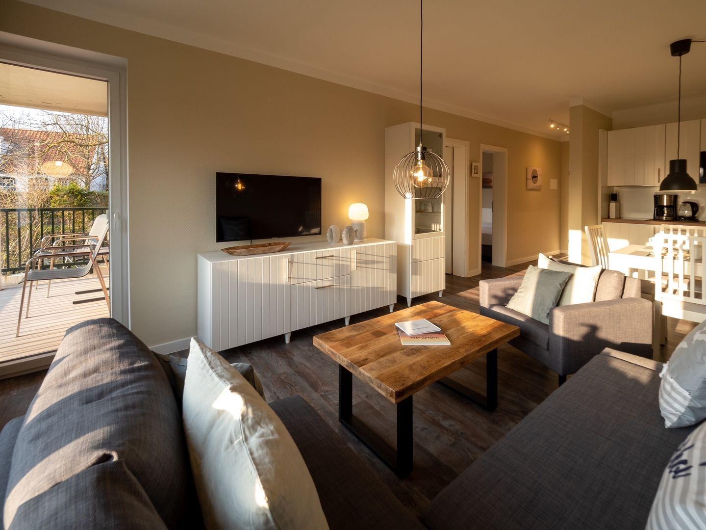 Komplett renoviertes 3-Zimmer-Appartement mit Balkon in bester Lage auf Spiekeroog, ideal für einen erholsamen Urlaub nahe Einkaufsmöglichkeiten.