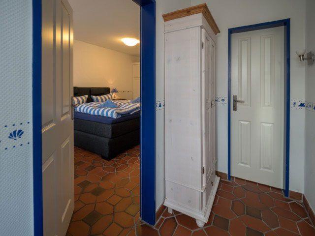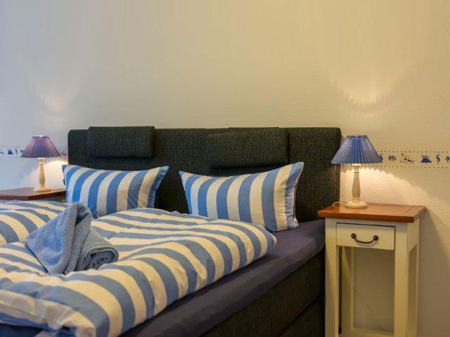 Das separate Schlafzimmer sorgt für erholsame Nächte und ist, wie das Wohnzimmer, ebenfalls mit Fliesenboden versehen. Im Badezimmer finden Sie eine Dusche mit Wanne, WC und Haartrockner vor. Bettwäsche, Handtücher sowie eine Erstausstattung gehören zum Serviceumfang, sodass Sie direkt nach der Anreise entspannen können. Ergänzend sind eine Garderobe, ein Staubsauger und ein Ganzkörperspiegel vorhanden.