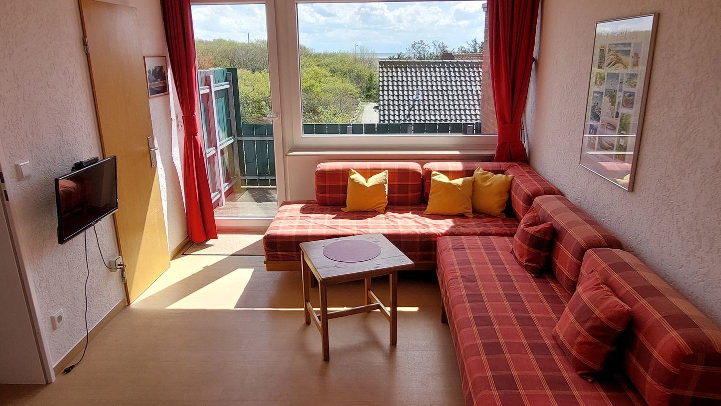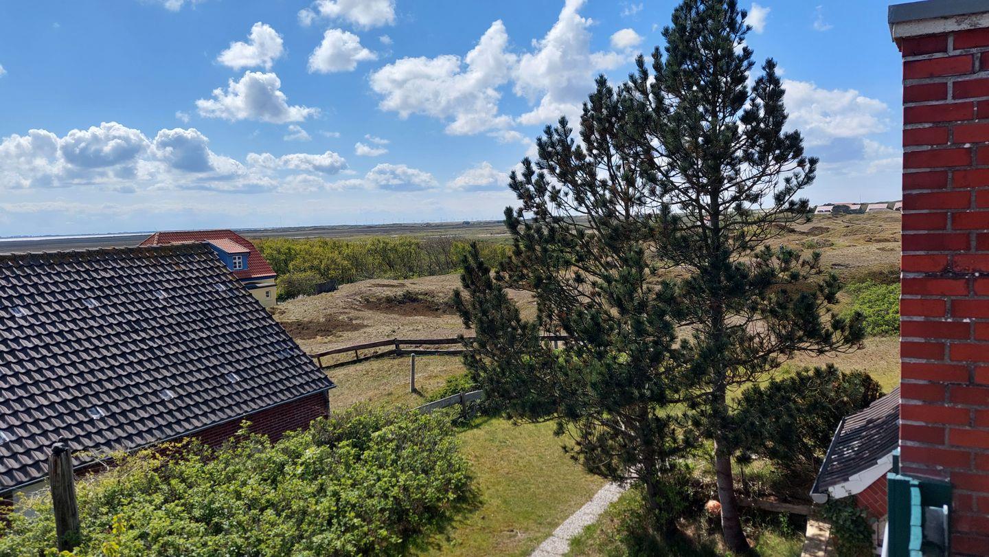 Unser Ferienhaus "Hannes Huus" liegt unterhalb der katholischen Kirche am Westrand des Dorfes in sehr ruhiger Lage. Es bietet eine wunderschöne freie Sicht in die nahe Dünenlandschaft, die Sie auf der großen Südterrasse oder dem -balkon unseres Hauses genießen können. Unsere gemütliche Sitzecke im Wohnzimmer lädt zum Verweilen ein, Ferienliteratur gibt es ebenfalls: Ruhe, Erholung und Entspannung pur.