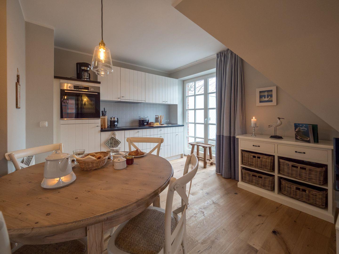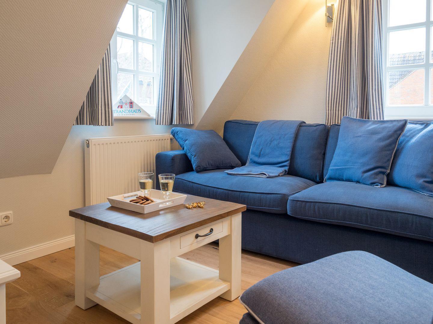 Die Wohnung hat eine Größe von 38 qm verfügt über einen nach Süden ausgerichteten Balkon. Die Dachschrägen machen diese Wohnungen besonders gemütlich. Die Wohnung verfügt über eine moderne und gut ausgestattete Einbauküche, einen Fernseher, Fön, Staubsauger und WLAN. Eine Waschmaschine und einen Trockner finden Sie im Keller des Hauses. Unser STRANDHAUS eignet sich herrlich für den Urlaub mit der Großfamilie. Eltern und Kinder wohnen Tür an Tür mit Tante, Onkel, Cousin, Cousine oder den Großeltern, spielen gemeinsam im Garten oder am Strand.