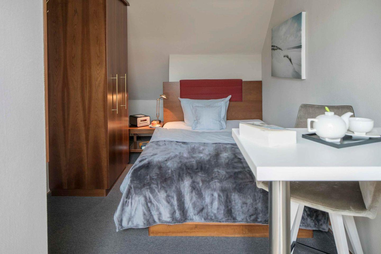 Modernes Einzelzimmer mit Balkoncharakter im Gästehaus Orion auf Spiekeroog.