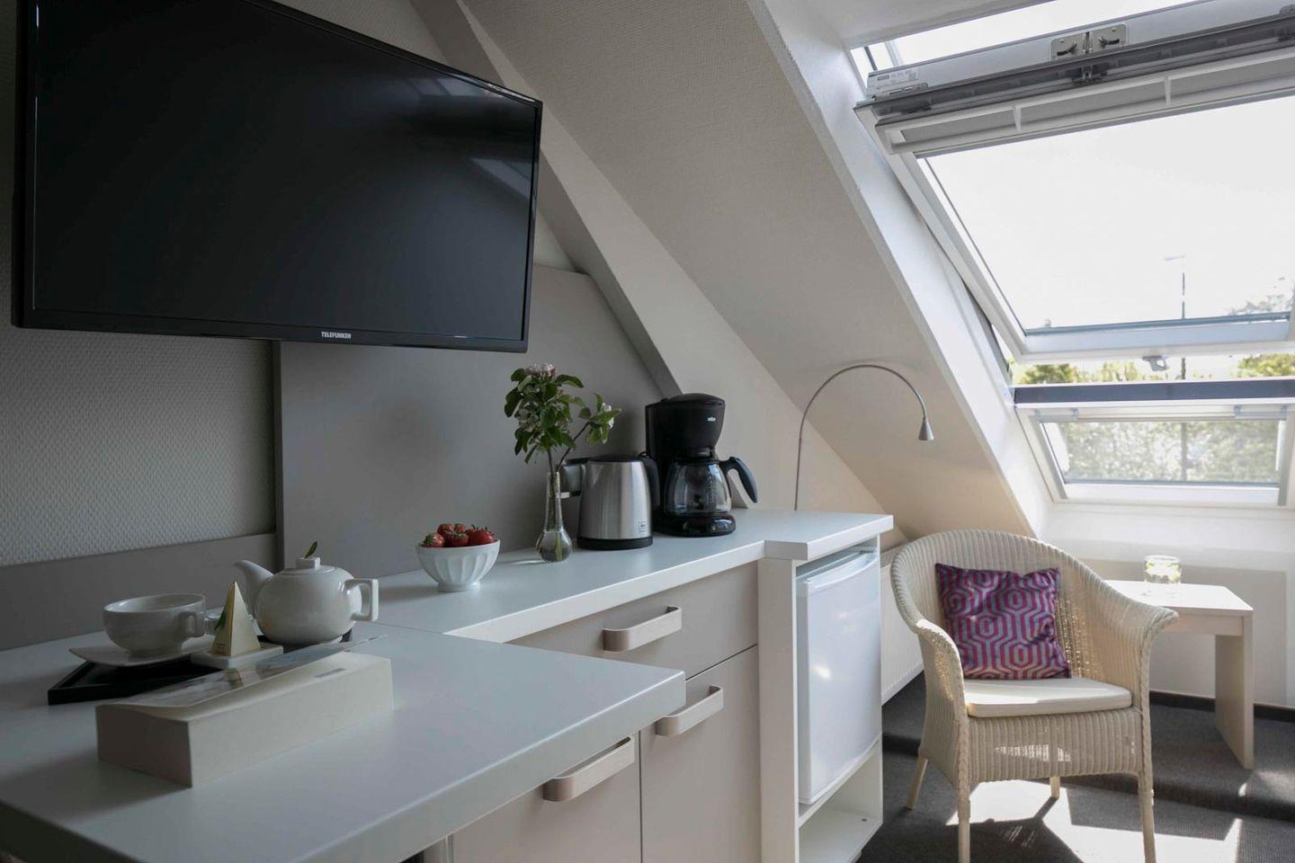 Das Zimmer ist ausgestattet mit einem 1,40 m breiten Boxspringbett, einem neuen Flachbild-TV mit Kabelfernsehen, einem Radio/CD-Spieler, eigenem WLAN und einem kleinen Kühlschrank. Zudem haben Sie die Möglichkeit, sich Tee oder Kaffee zuzubereiten. Die geschmackvolle und elegante Einrichtung sorgt für eine angenehme Urlaubsatmosphäre.