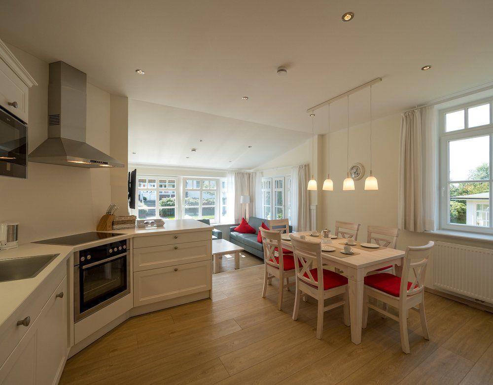 Wunderschöne EG-Wohnung "Bosse" im Haus Bullerbü für bis zu 4 Personen: Ca. 60 m² mit inseltypischer Veranda, großer Wohnbereich-Essbereich im nordischen Stil eingerichtet, zwei Schlafzimmer, ein Tageslichtbad mit Dusche und WC. Die Küche ist ausgestattet mit Herd, Backofen, Mikrowelle, Kühlschrank und Spülmaschine.