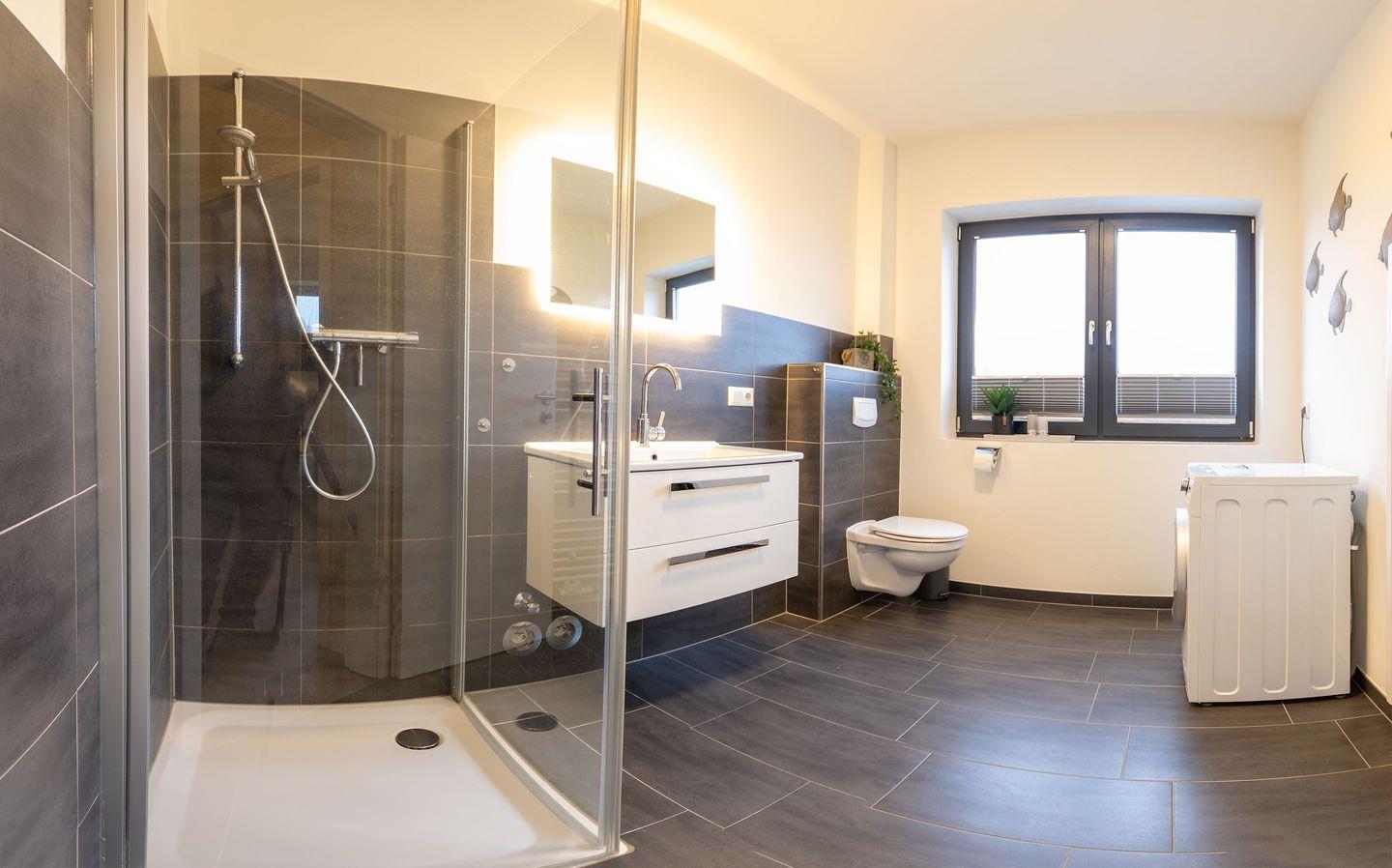 Das Tageslicht Duschbad/WC verfügt über ausreichend Ablageflächen und ein Fenster zum Lüften. Als weitere kostenlose Annehmlichkeit gibt es im Bad eine Waschmaschine, die Ihnen zur alleinigen Nutzung zur Verfügung steht.