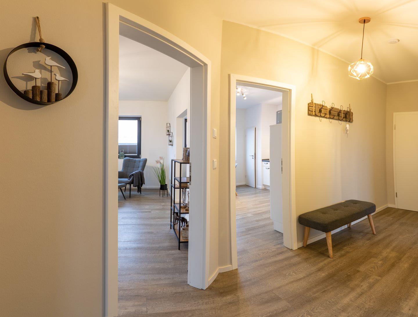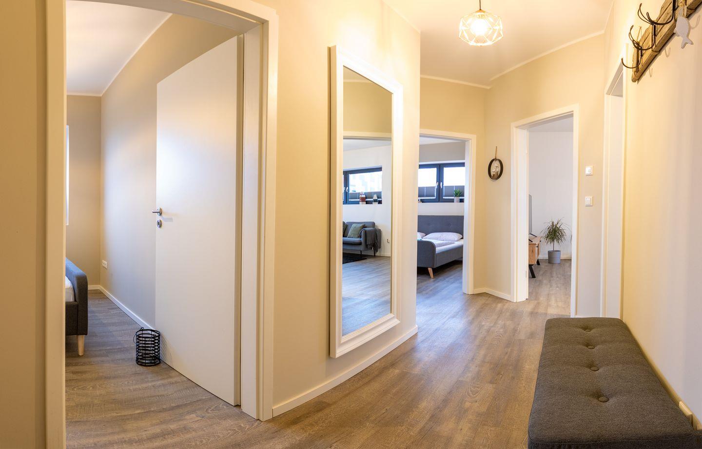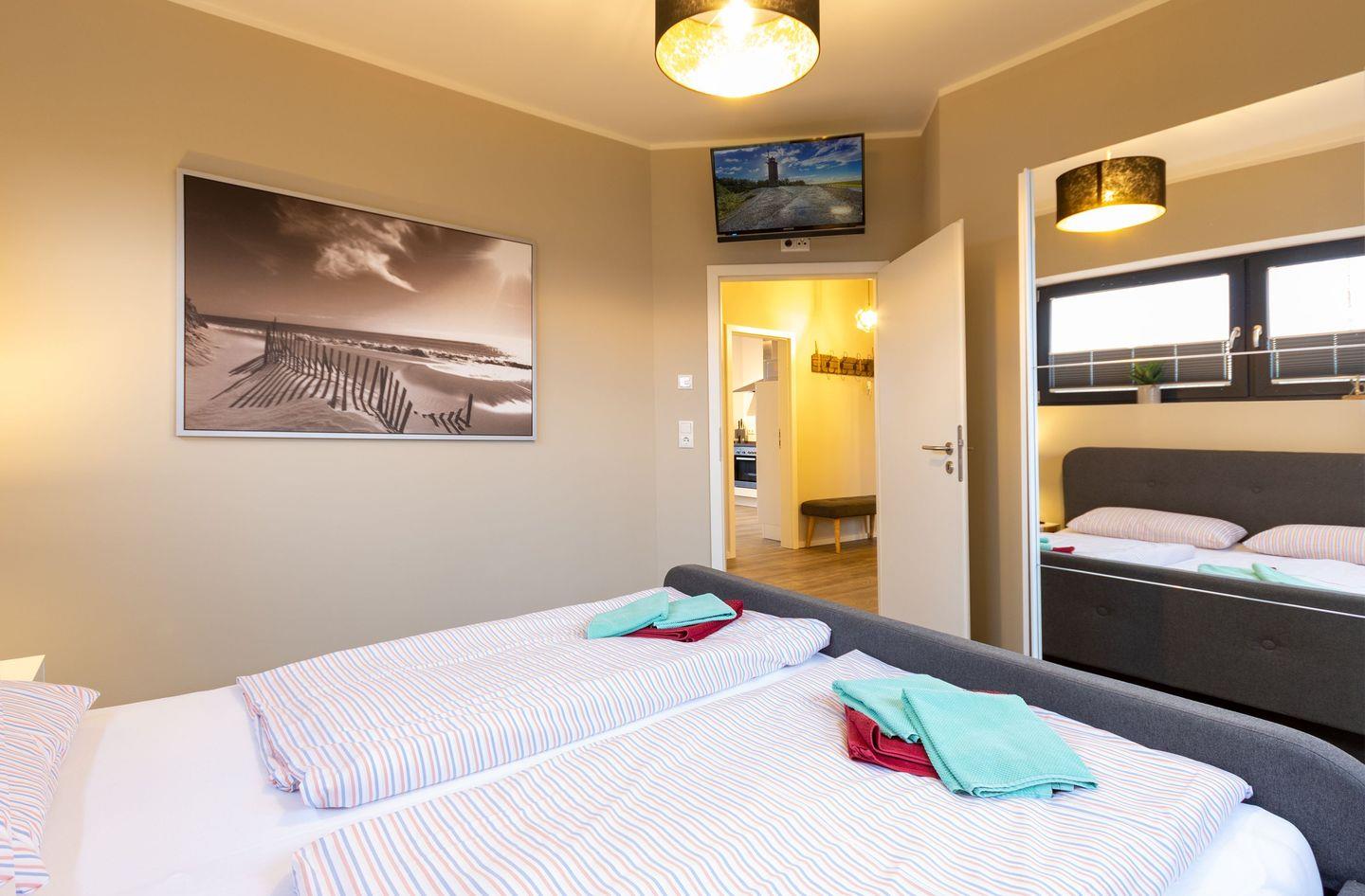 Es gibt zwei Schlafzimmer in der Wohnung. Beide sind mit einem Doppelbett (1 x 160×200 cm, 1 x 180x200cm) ausgestattet. Selbstverständlich ist ausreichend Schrankplatz für Ihre Urlaubsgarderobe vorhanden.