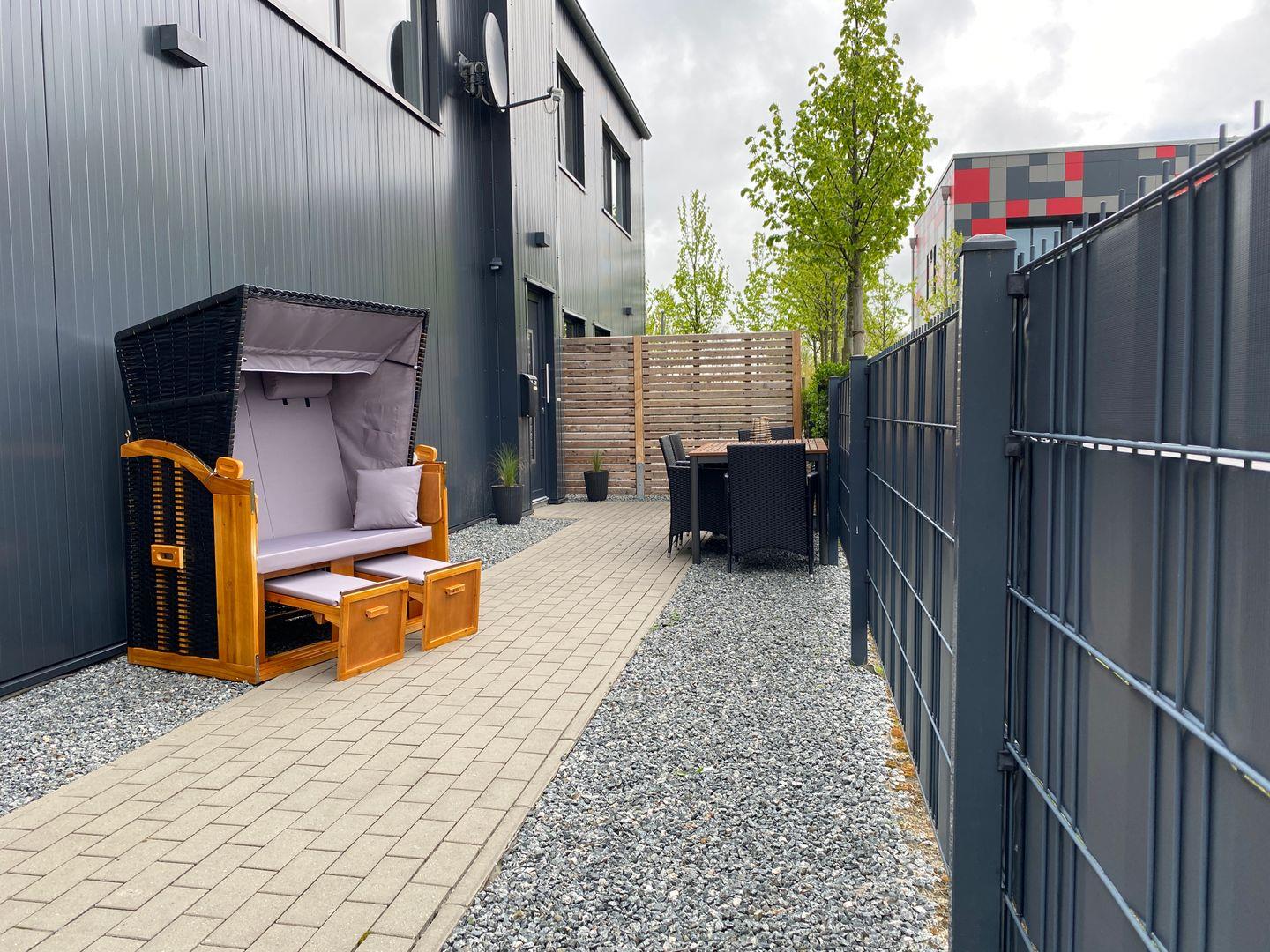 Moderne Ferienwohnung Deck 36 nahe Westküstenpark in St Peter-Dorf mit Terrasse und Parkplatz.