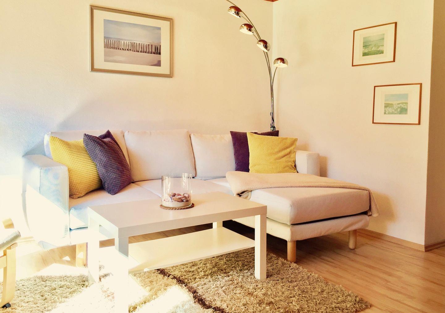 Das Wohnzimmer verfügt über eine gemütliche Eckcouch sowie einen bequemen Fernsehsessel. Ein Farb-Sat-TV sowie eine Mini-Musikanlage sind selbstverständlich vorhanden. Ein WLAN-Zugang steht Ihnen kostenlos zur Verfügung.