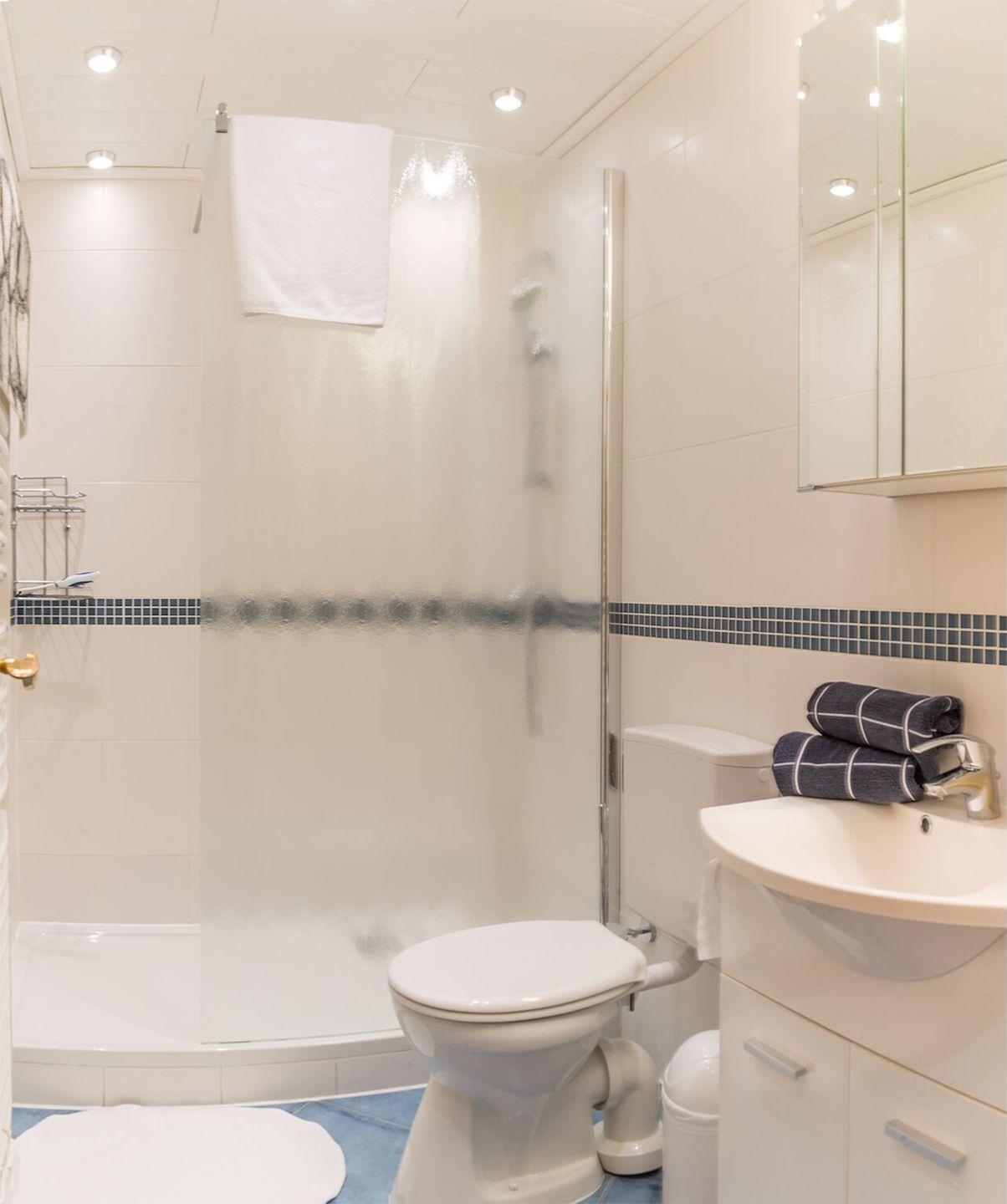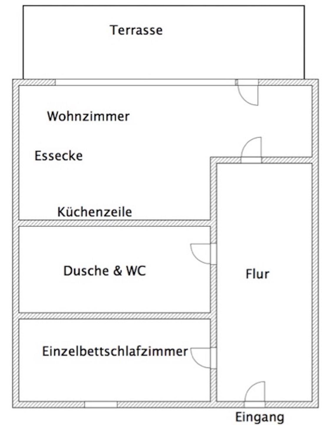 Das innenliegende Duschbad, welches vom Flur zu erreichen ist, ist mit einer Dusche, Waschbecken und WC ausgestattet.