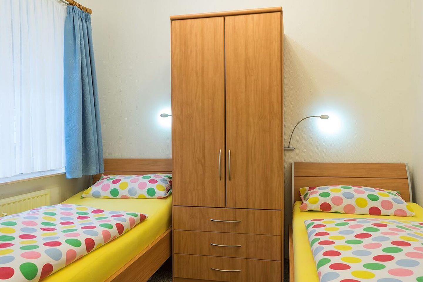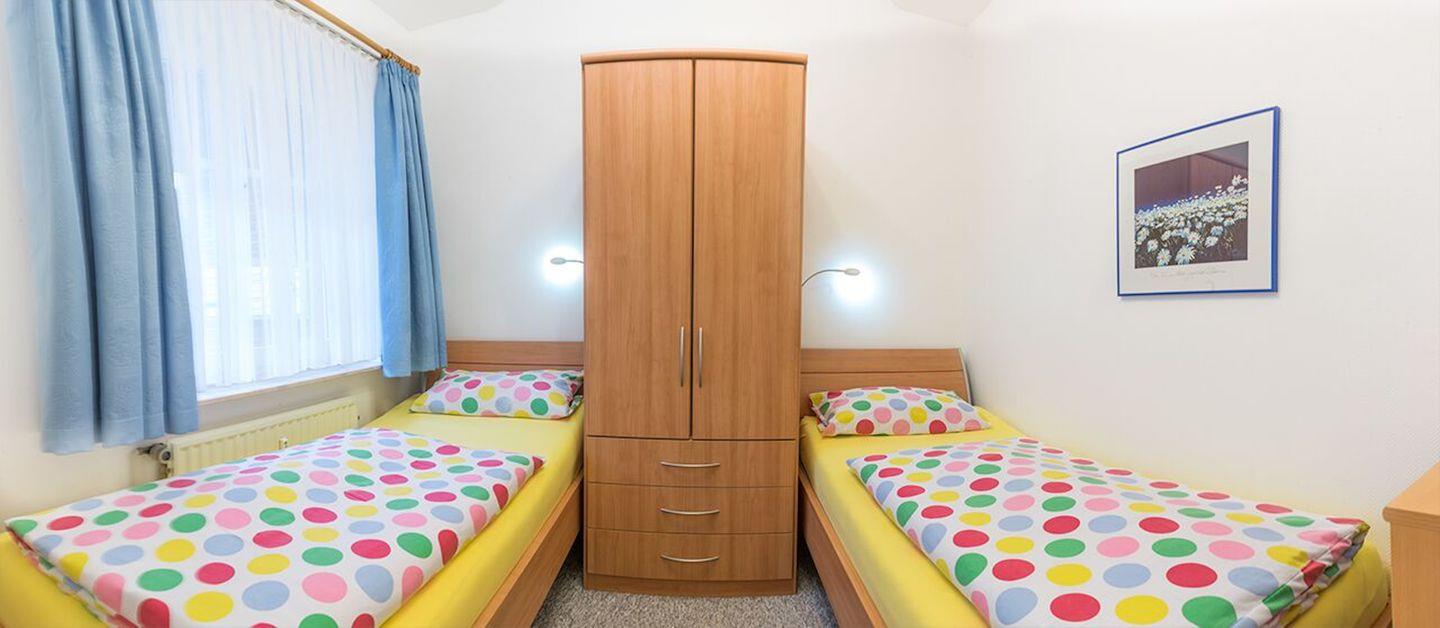 Das Schlafzimmer ist mit zwei Einzelbetten sowie einem Kleiderschrank ausgestattet.