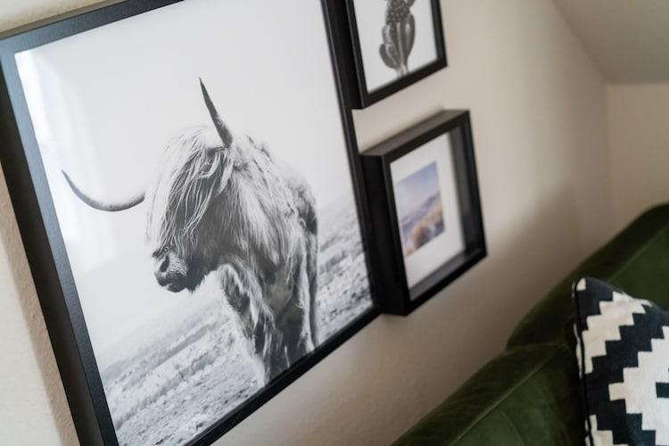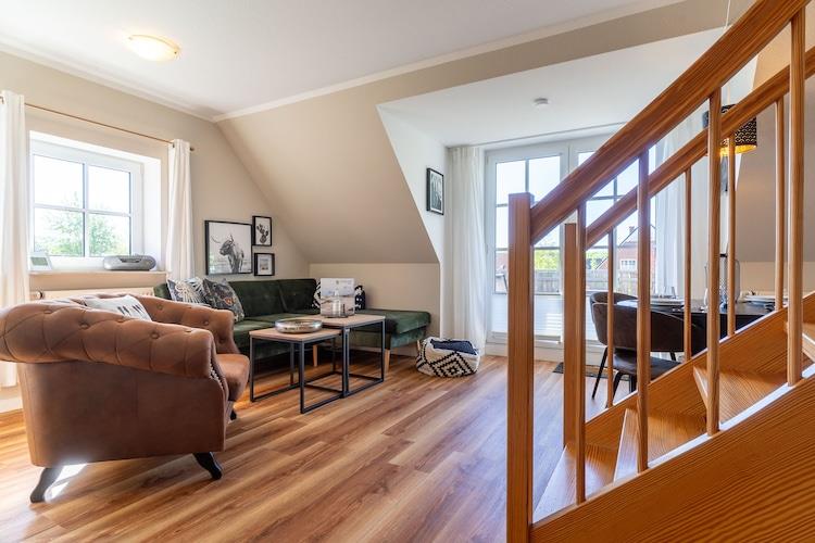 In der 1. Etage: (offene Küche(Kochplatte(4 Kochplatten, Ceranfeld), Wasserkocher, Toaster, Dunstabzugshaube, Kaffeemaschine, Backofen, Mikrowelle, Spülmaschine, Kühl-/Gefrierkombination), Wohn/Esszimmer(TV(Flatscreen, Satellit), Esstisch, Sitzecke, Radio), Schlafzimmer(Doppelbett(140 x 200 cm)), Badezimmer(Dusche, Waschbecken, Toilette, Föhn)) Dachgeschoss(über steile Treppe): (Galerieschlafzimmer(Doppelbett(140 x 200 cm), TV(Flatscreen, Satellit), Kinderbett (kostenlos))) Gartenmöbel, Balkon, Heizung, Parkplatz, Wäschepaket inklusive