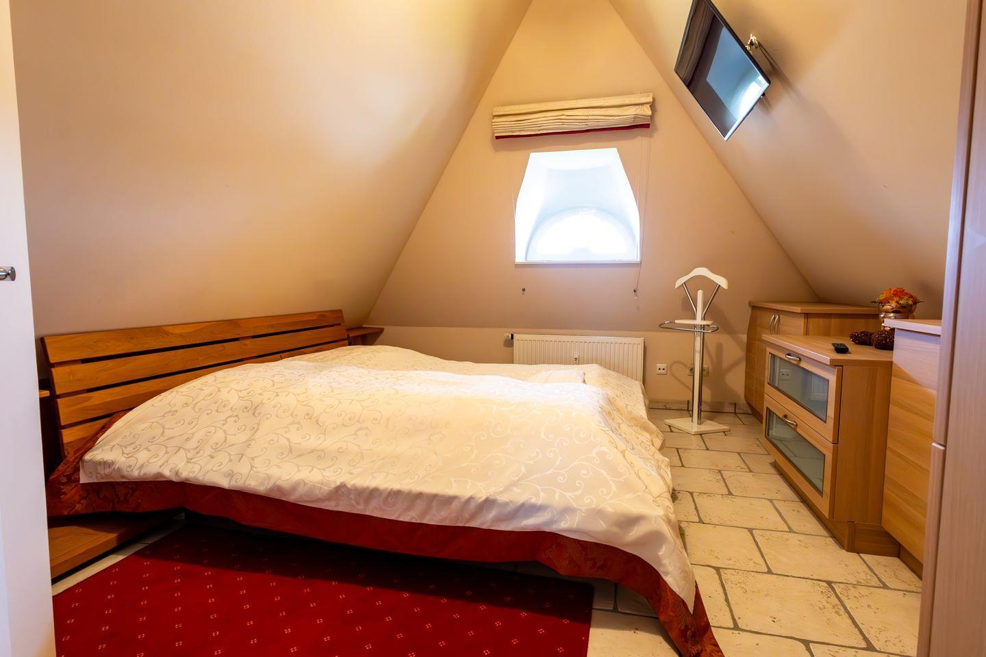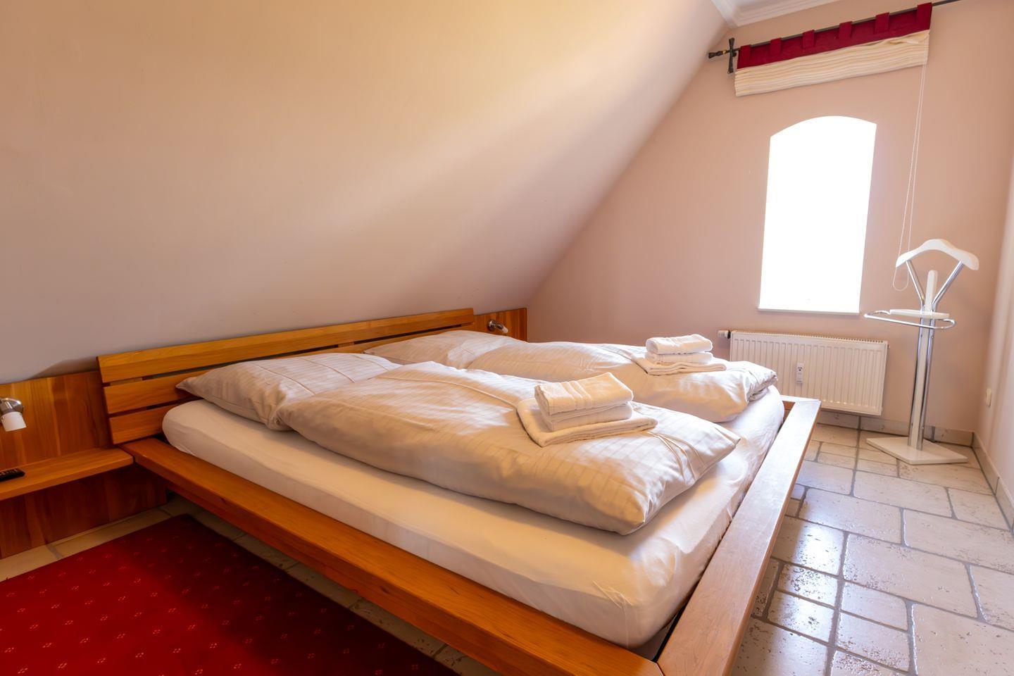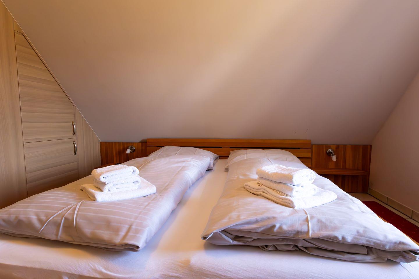 Dachgeschoss: ein Schlafzimmer mit Doppelbett (180 x 200 cm) und Duschbad / WC en Suite