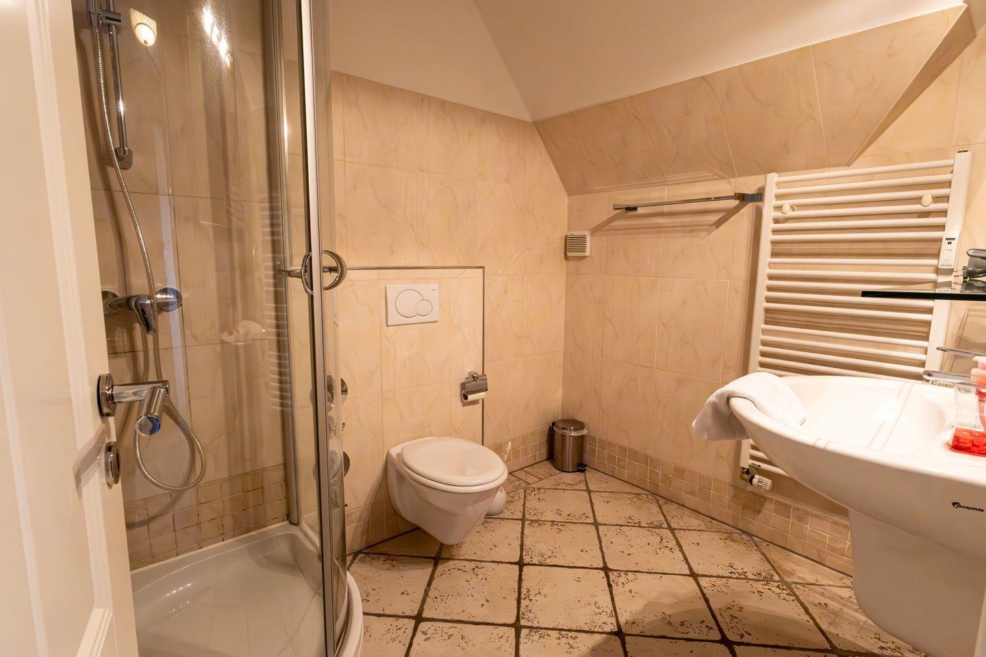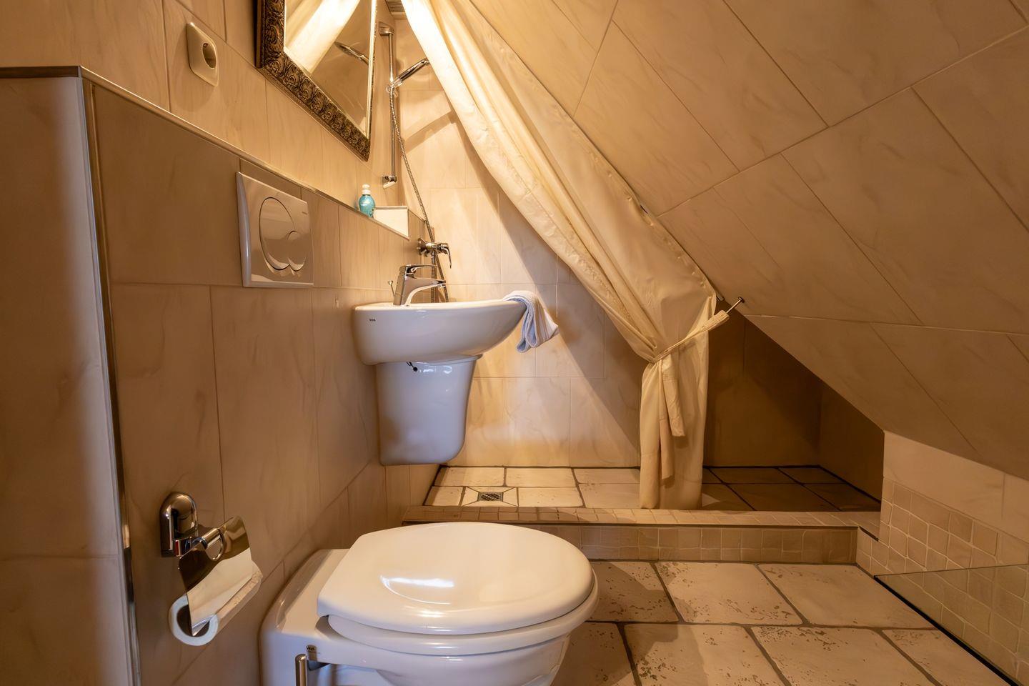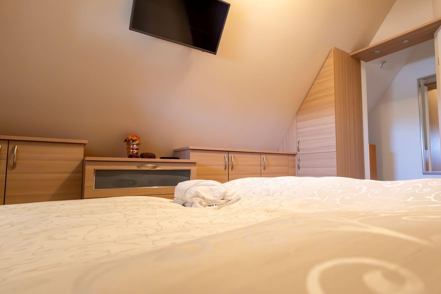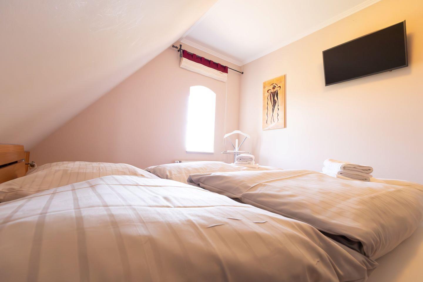 Dachgeschoss: ein Schlafzimmer mit Doppelbett (180 x 200 cm) und Duschbad / WC en Suite